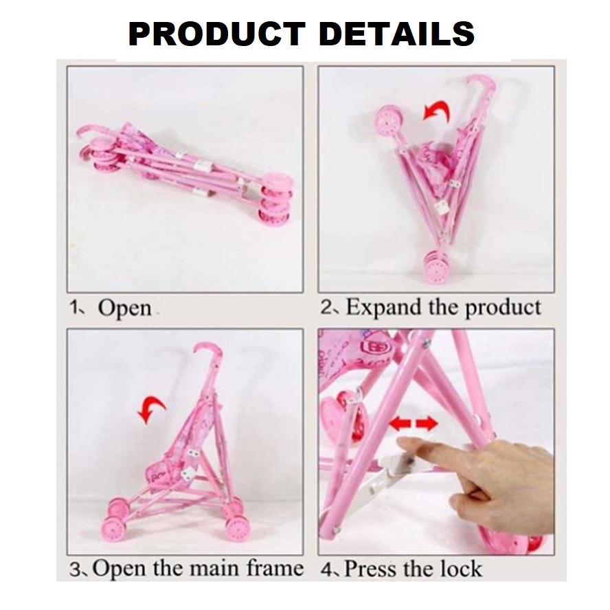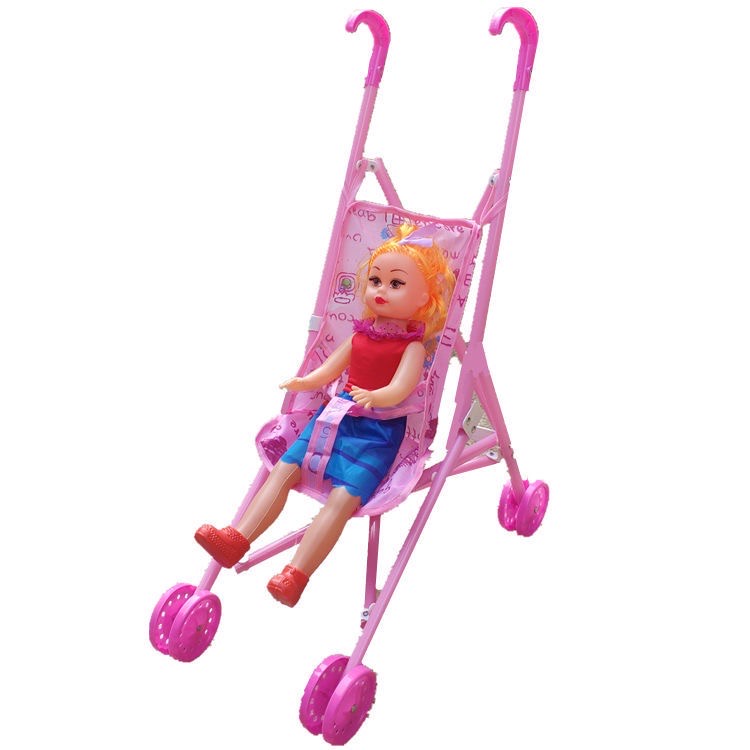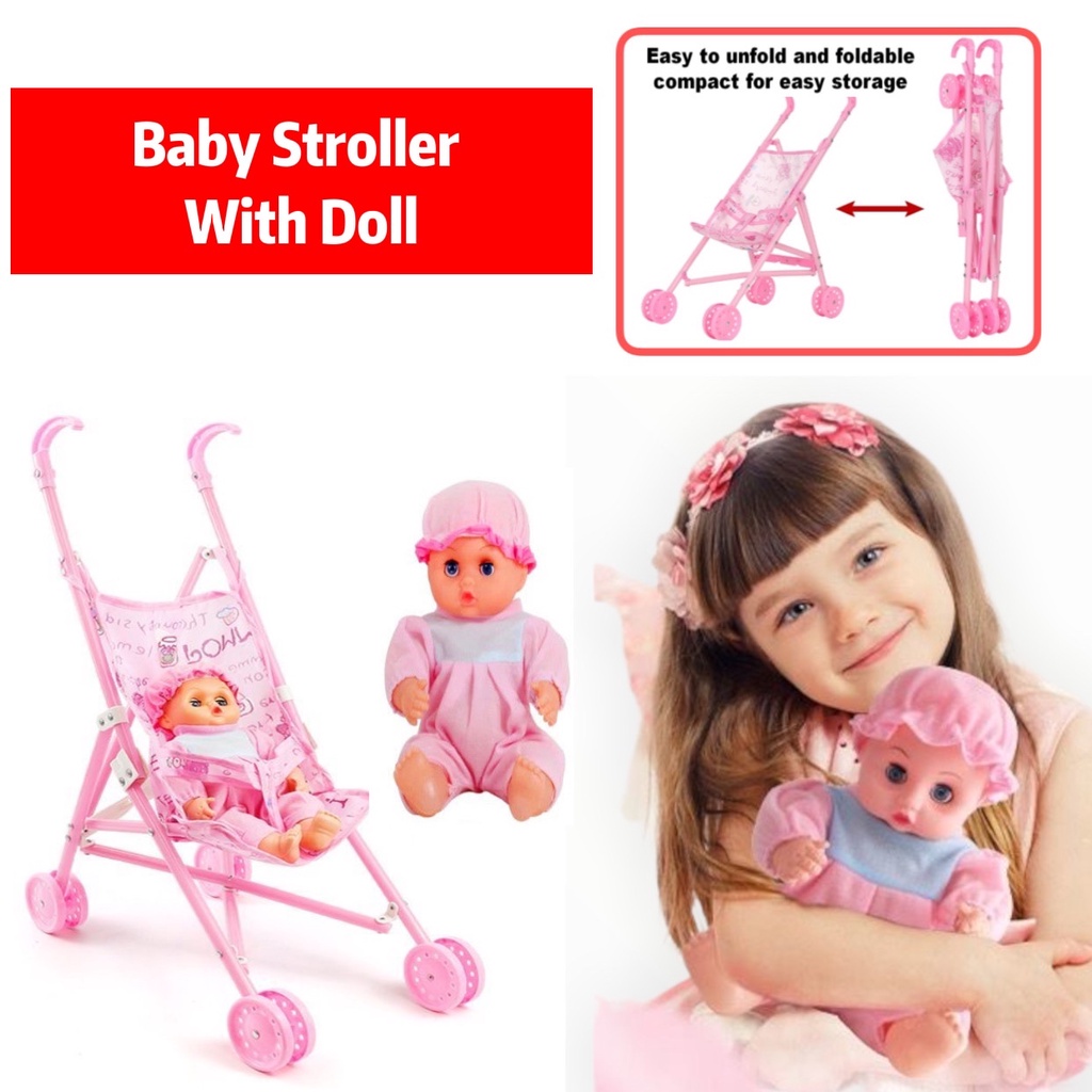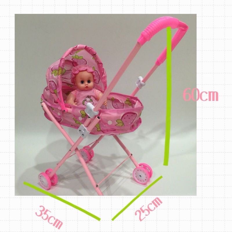 Baby Dolls Stroller Pram Toys with Baby Doll Trolley Toy Pretend Play Stroller With Doll Carriage Foldable Pushchair Toy