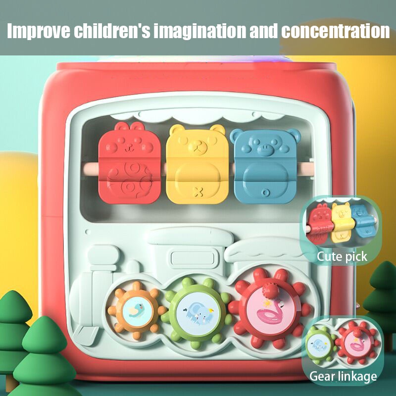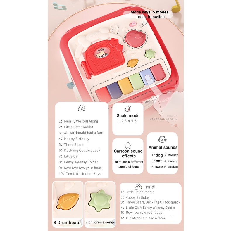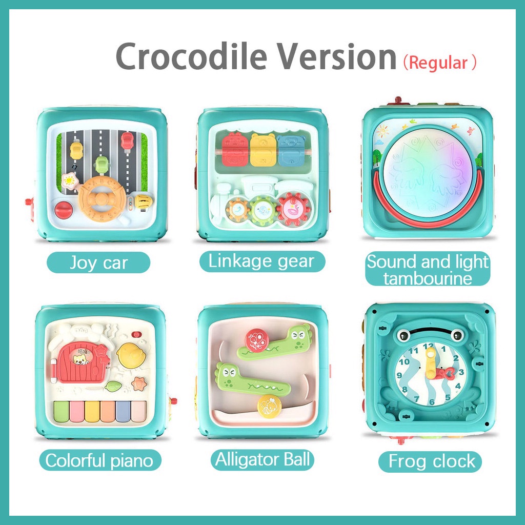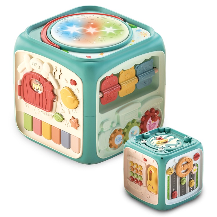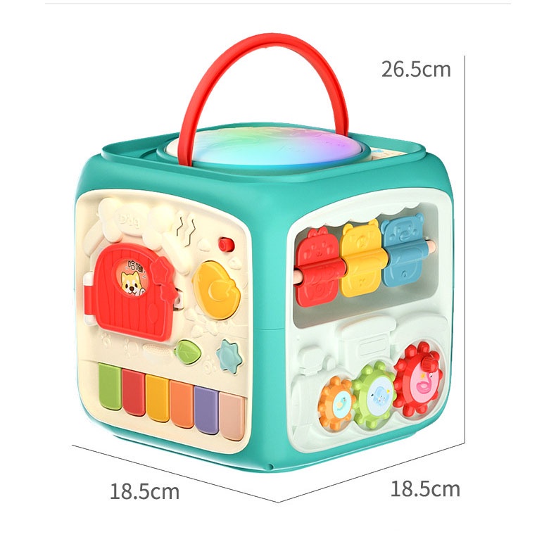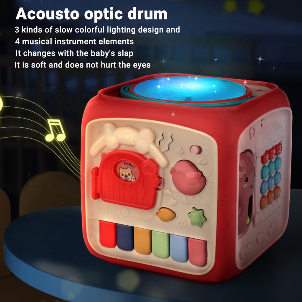 Baby Multi-Function Musical Toy Six-Sided Hand Drum Knocking Piano Drummer Geometric Building Block Polyhedral Body Cube Educational Toys For Kids