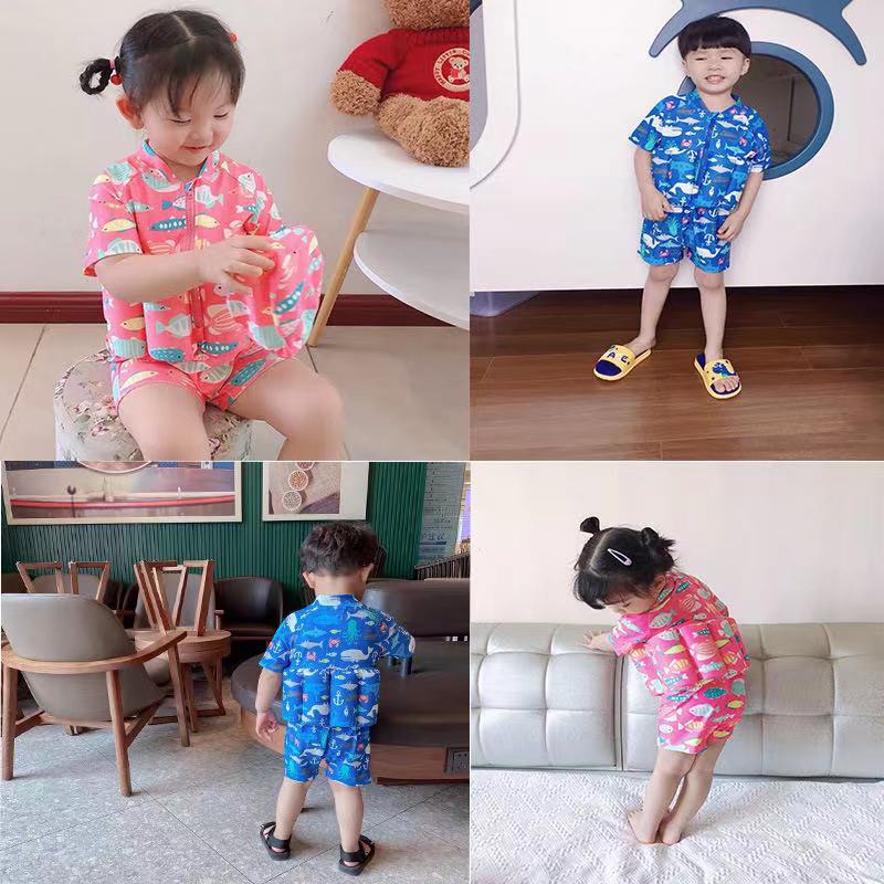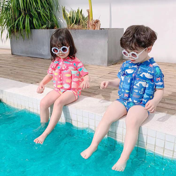 Baby One Piece Swimsuit Inflatable Swimwear Kids Floaters Boy Girl Cute Whale Swimming Float