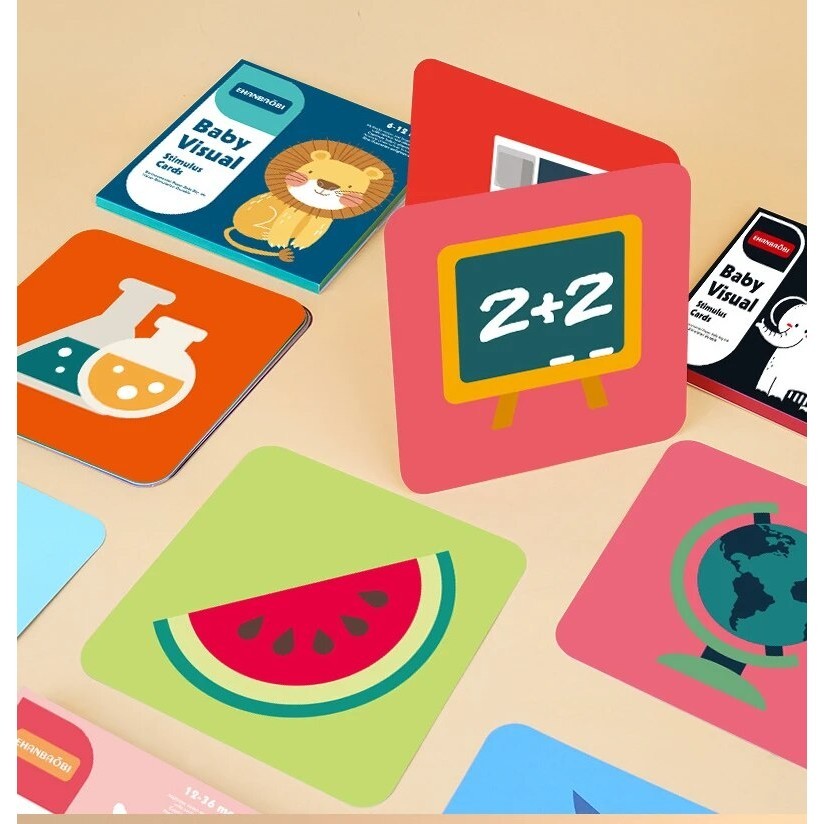 Baby Visual Cards Visual Stimulation Flashcards for Babies - Black, White & Color Learning Set