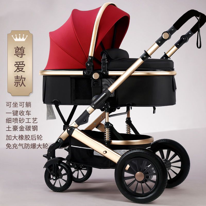 Baby stroller Multifunctional folding lightweight two-way four-wheeled shock-absorbing stroller Lightweight compact stroller Outdoor travel stroller