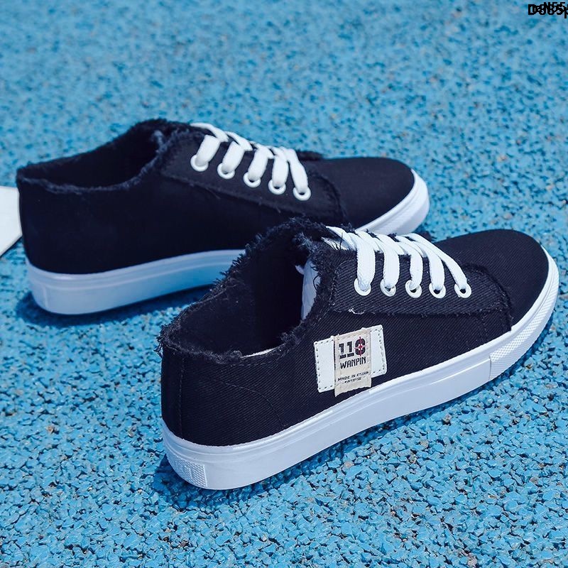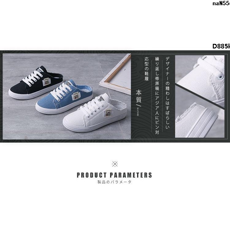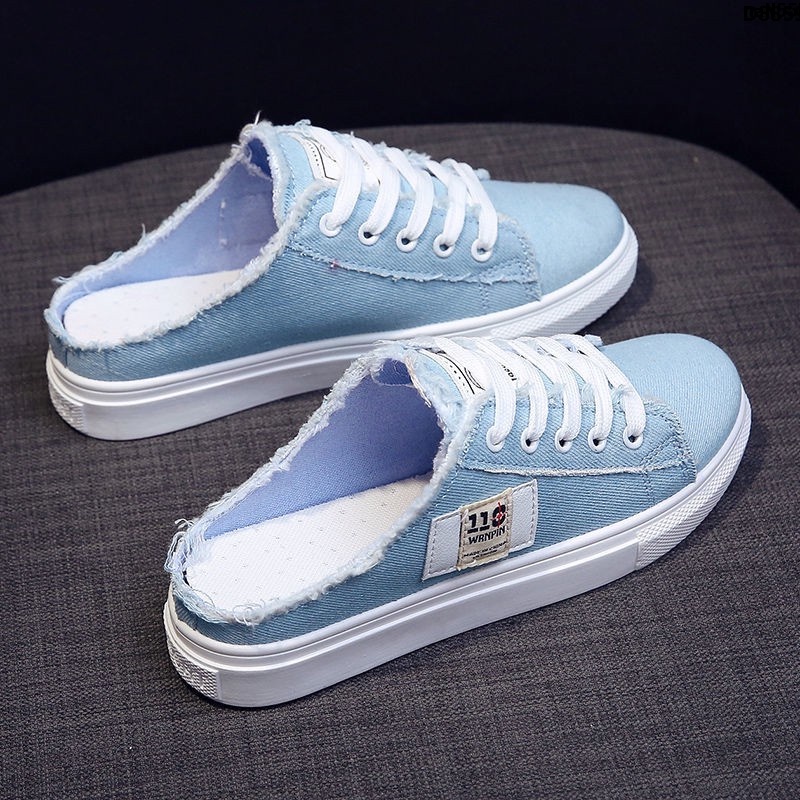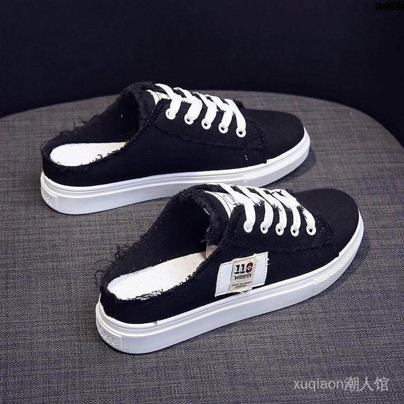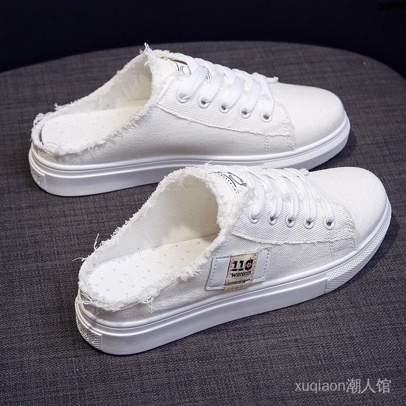 Back Lazy Canvas Shoes New Style One-Foot Drag!Heel Cloth Flat Sole Korean Version Half No Student Female White Spring Summer <