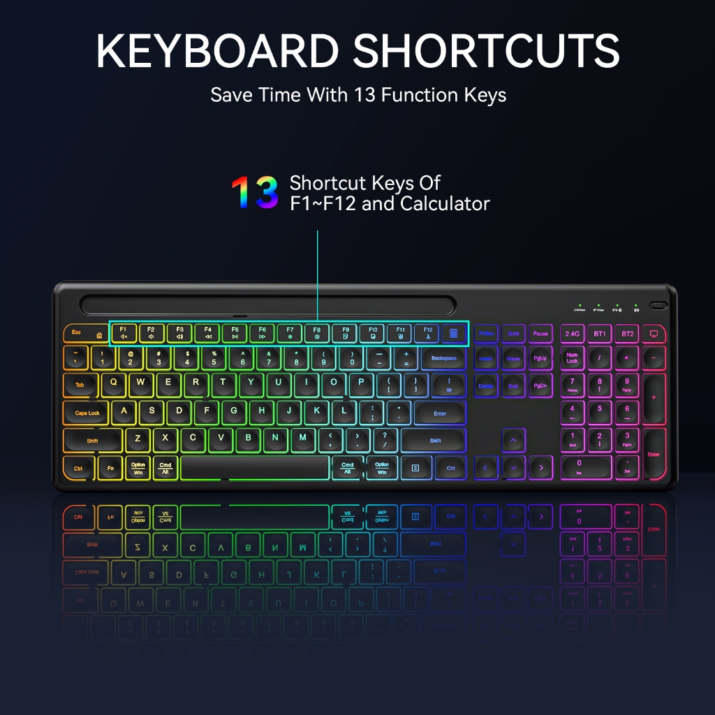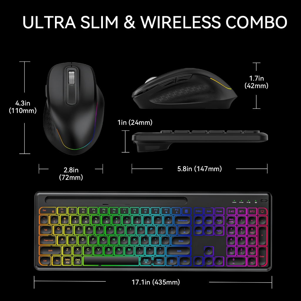 Jomaa Backlit Wireless Keyboard and Mouse Combo with Holder Stand Full Size Ergonomic Keyboard Mouse Set for PC Laptop
