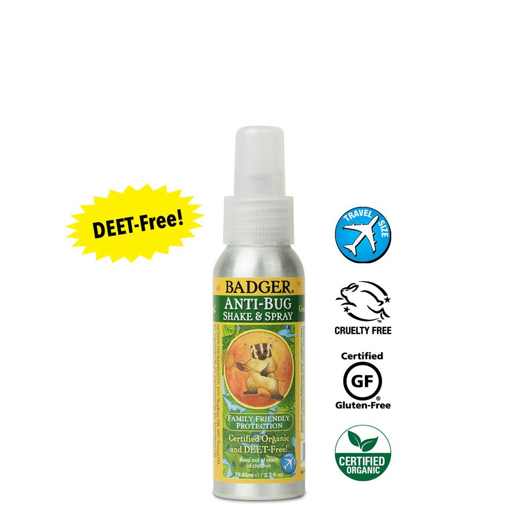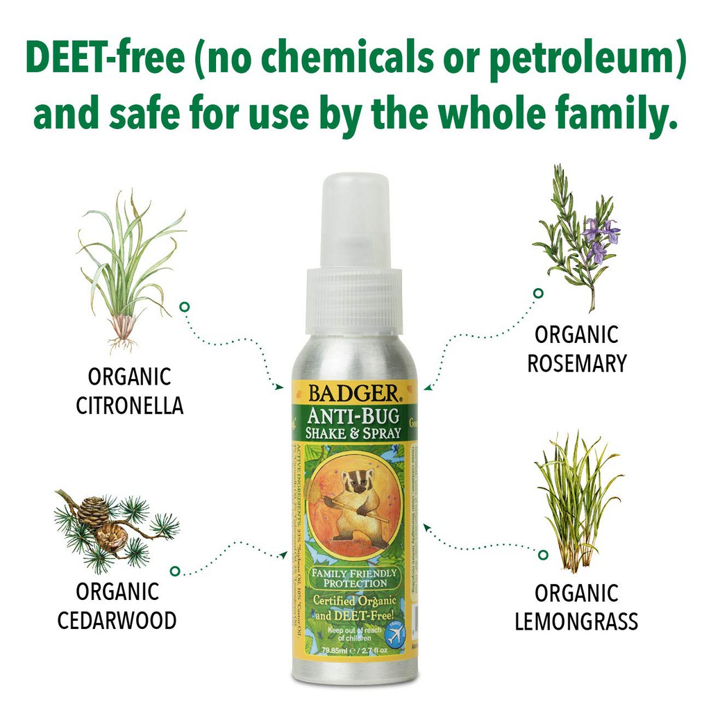 Badger - Anti-Bug Shake & Spray, DEET-Free Natural Bug Spray,Certified Organic Mosquito insect repellent (80ml/ 118.3ml)
