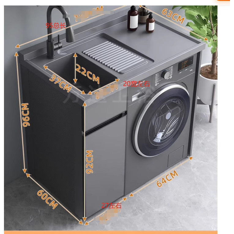 Balcony Washing Machine Cabinet Combination Laundry Pool Basin with Washboard Space Cabinet Custom Laundry Wardrobe