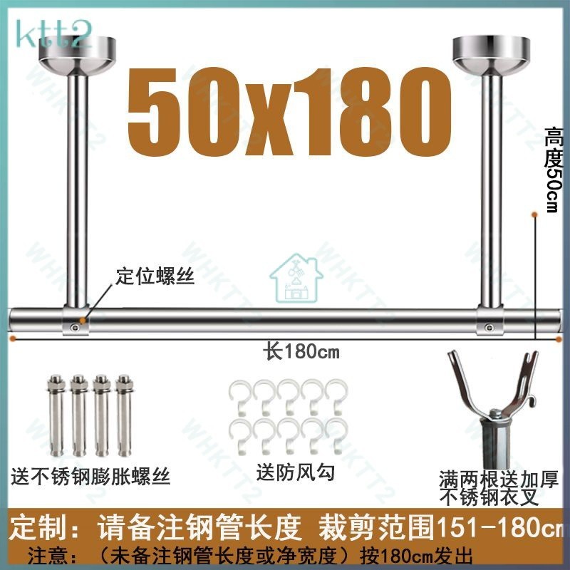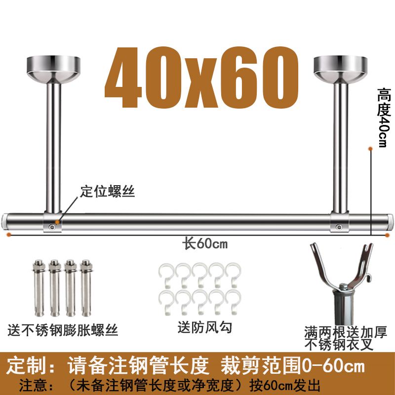 Balcony stainless steel clothes drying pole fixed 25 tube clothes drying rack single pole thickened clothes drying rod wall hanging pedestal top installation