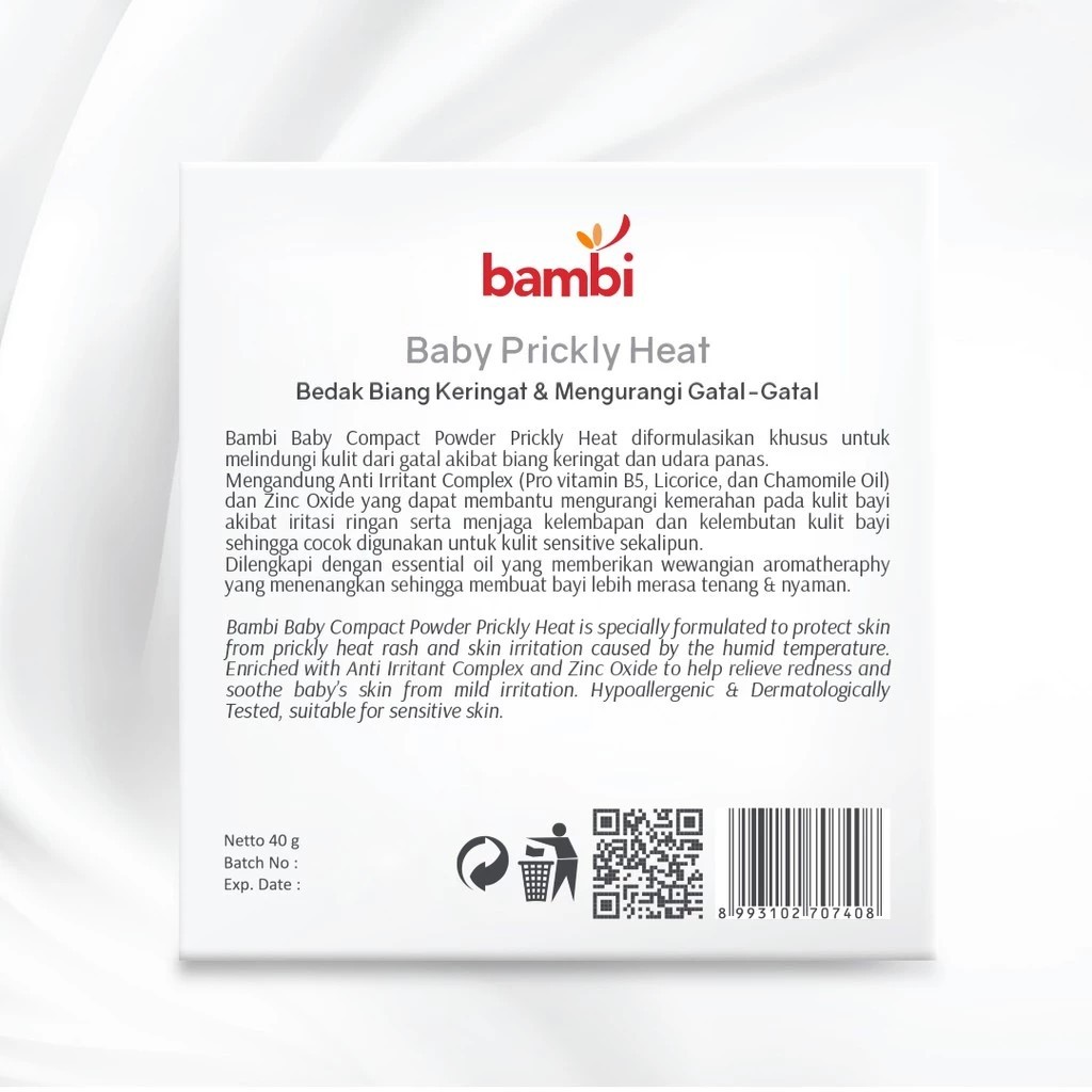 Bambi Baby Compact Powder Prickly Heat 40g | Compact Powder for Prickly Heat, Treats Itching & Rashes | Normal - Sensitive Skin