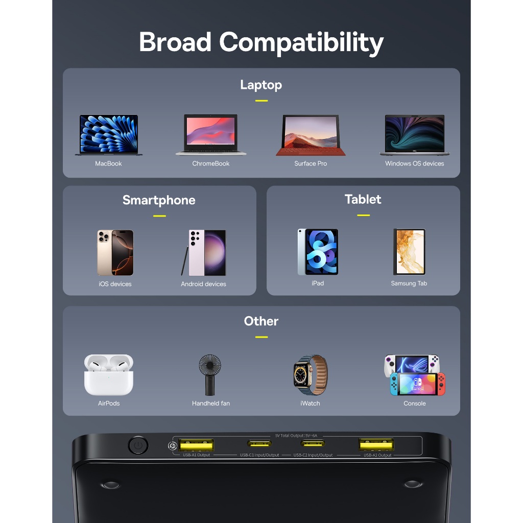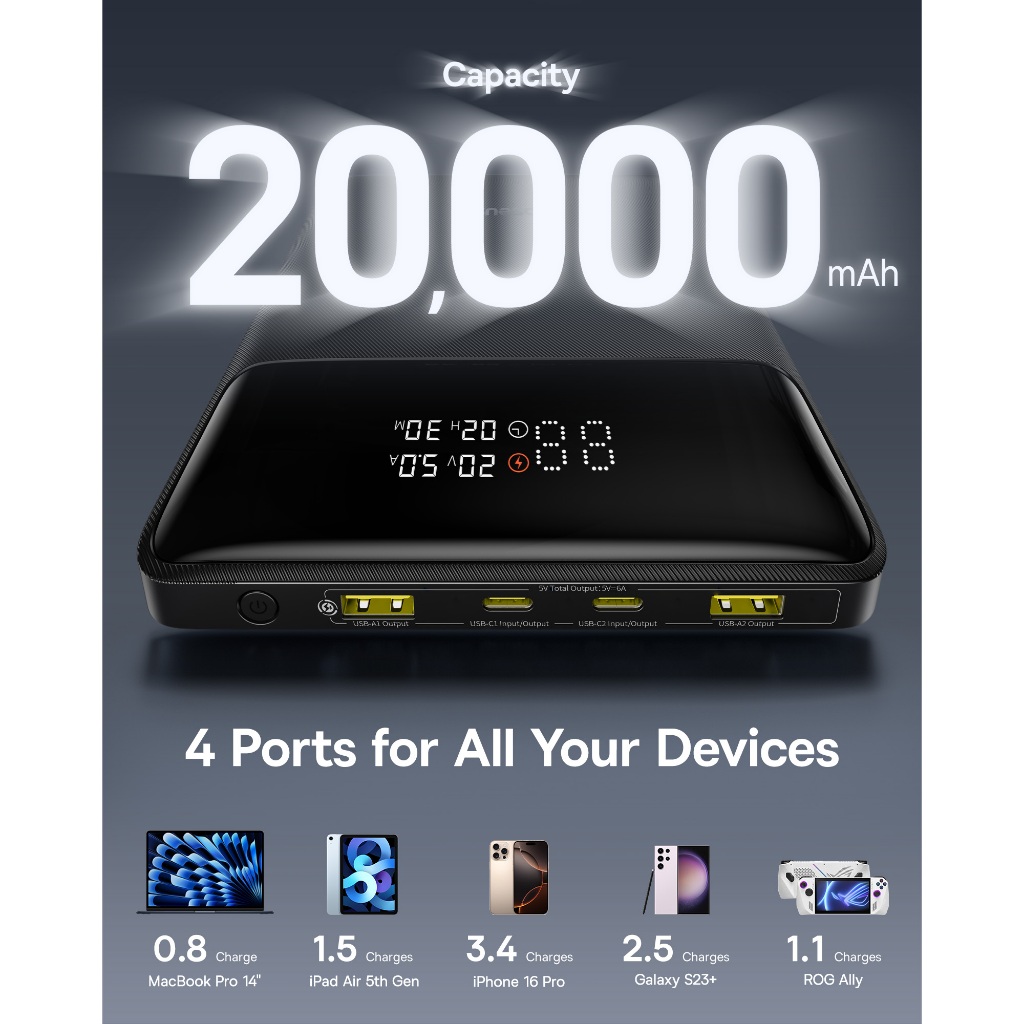 Baseus Blade H1 100W Powerbank 20000mAh PD Fast Charging Portable External Battery For Laptop Phone