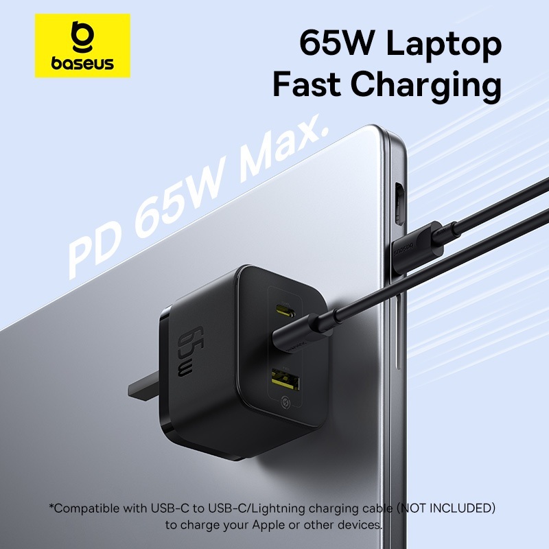 Baseus Palm Fast Charger 2C+U 65W UK PD Compact Three-Port Fast Charging For Phone Laptop