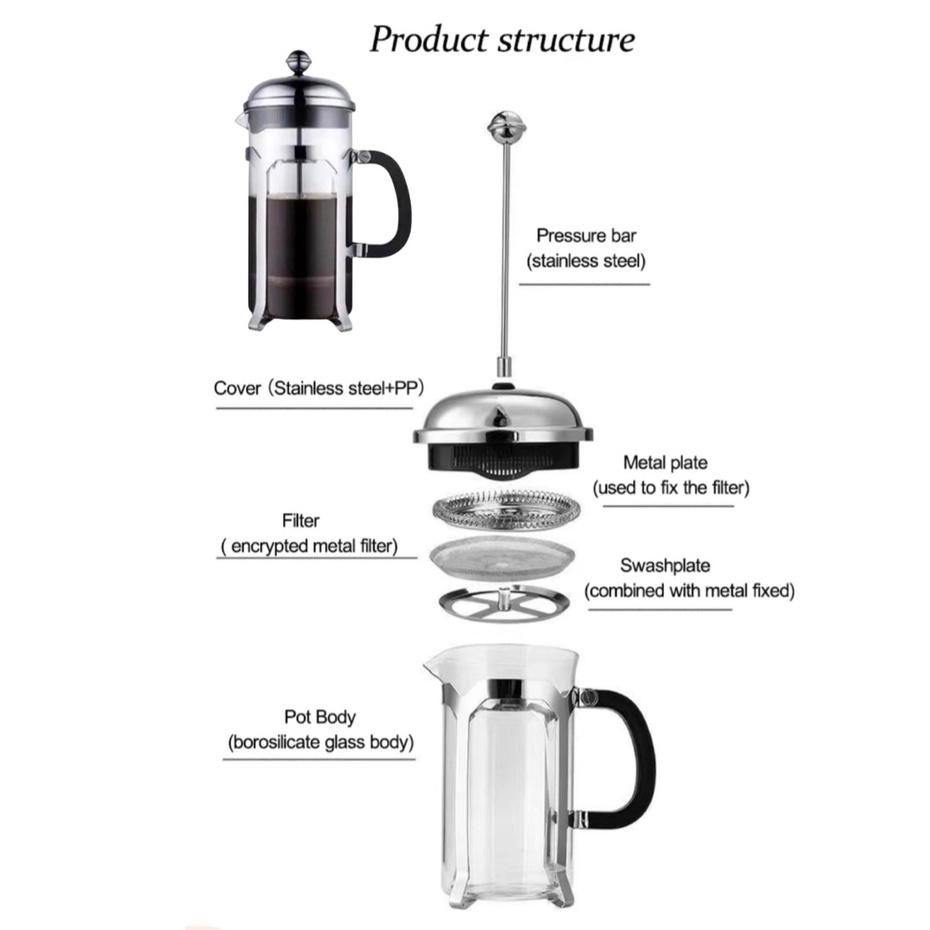 Basic Coffee/Tea Plunger/FrenchPress Make Coffee Tea Milk Froth 350ml 600ml 800ml Stainless Steel/Glass