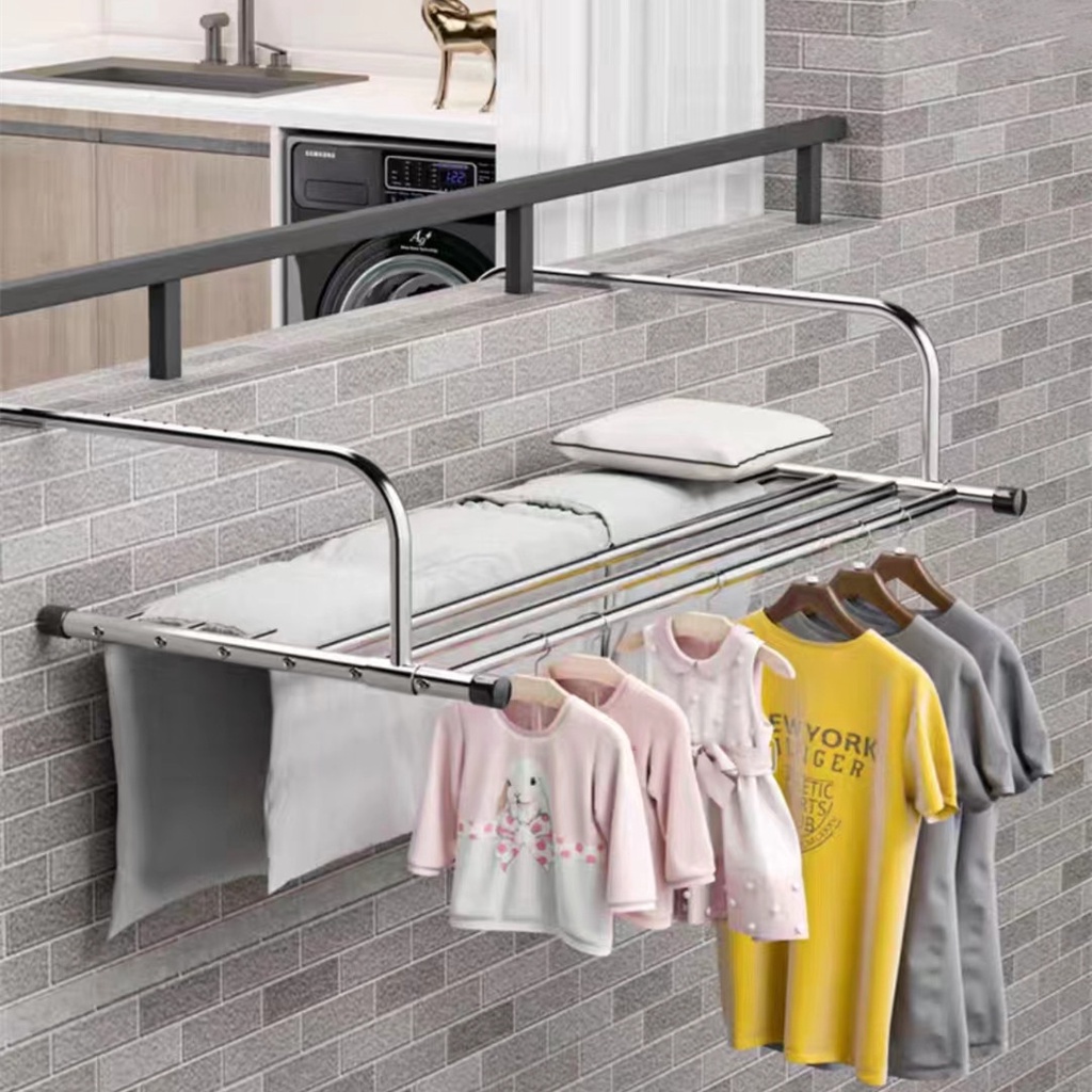 Basic/Retractable Foldable Stainless Steel Clothes Drying Rack Window Balcony Garment Hanging Stand Ledge Fence Laundry