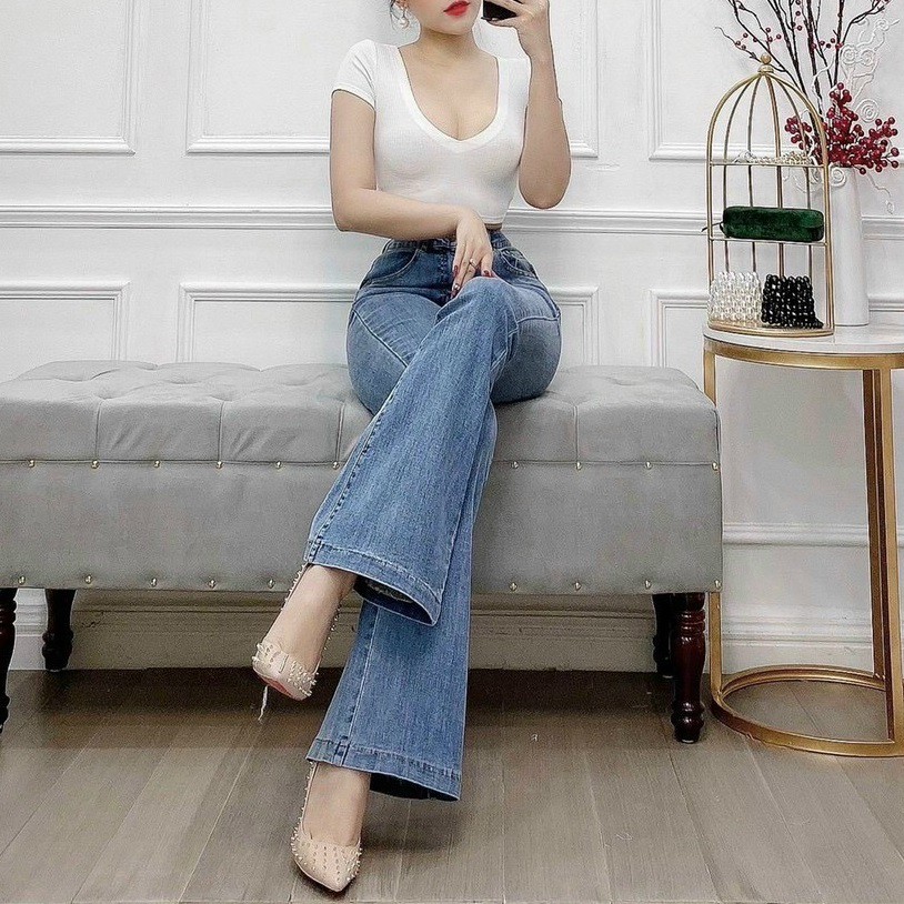 Basic solid color high-waisted flared jeans, chic and figure-hugging