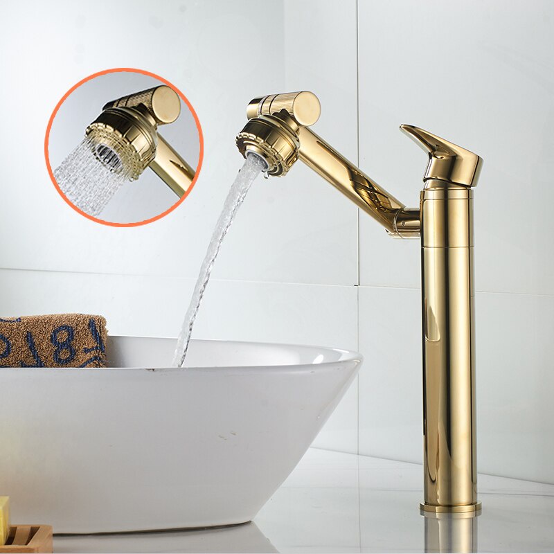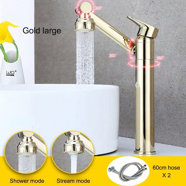 Basin Faucet Water Tap 360 Degree Swivel Gold Bathroom Faucet 304 Stainless Steel Kitchen Sink Tap Hot and Cold Mixer Sink Water Crane