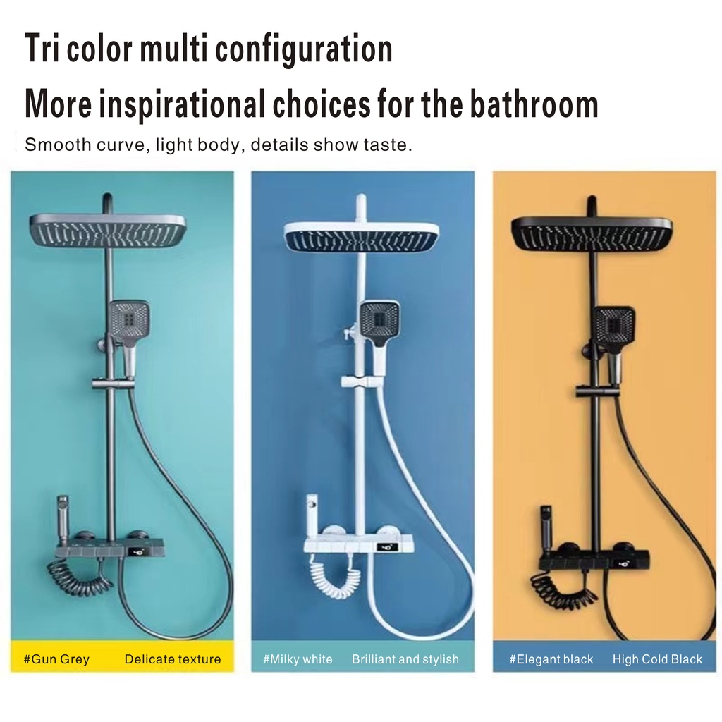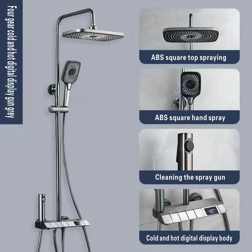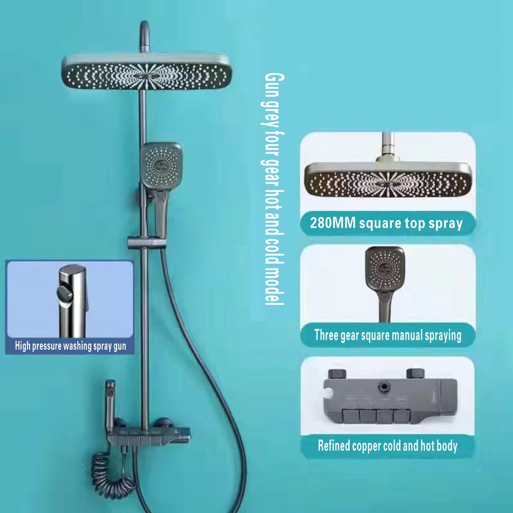 Bathroom shower set Household all copper intelligent constant temperature pressurized shower nozzle shower shower a whole set of gun ash