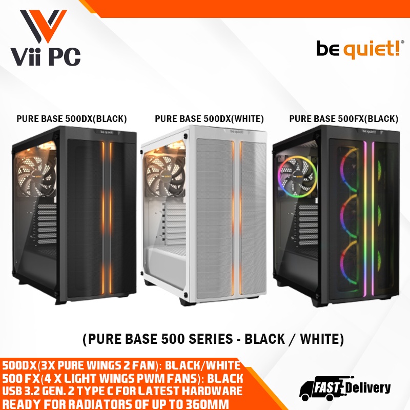 Be Quiet! Pure Base 500DX / 500 FX, Black / White, Mid Tower ATX case, ARGB, included casing fan, TPG PC case, 500fx/dx