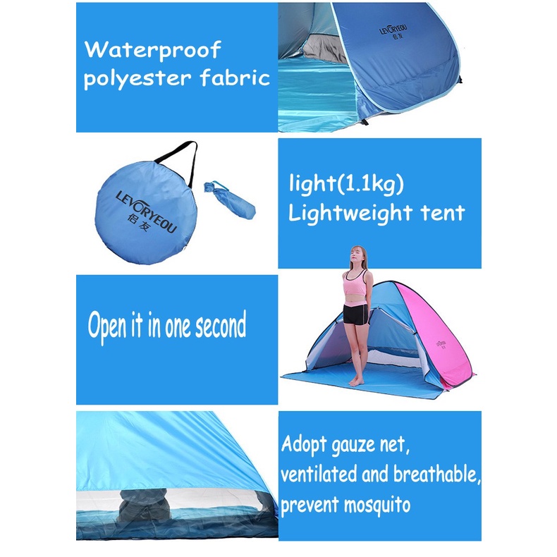 Beach Tent,Automatic Pop Up Beach Tent Beach,Portable Outdoor Beach Shade Tent Fit 3-4 Person for Camping,Family,Picnic
