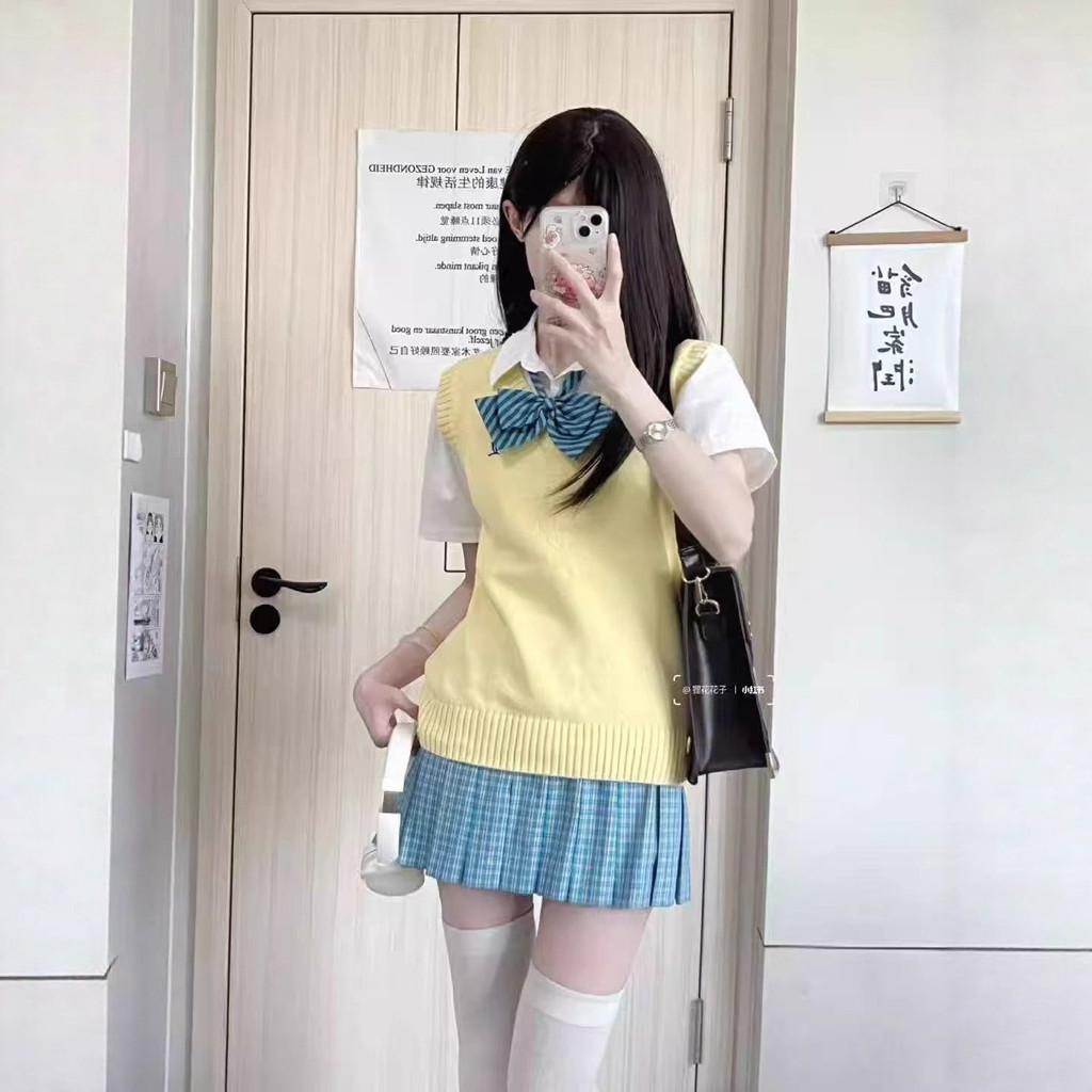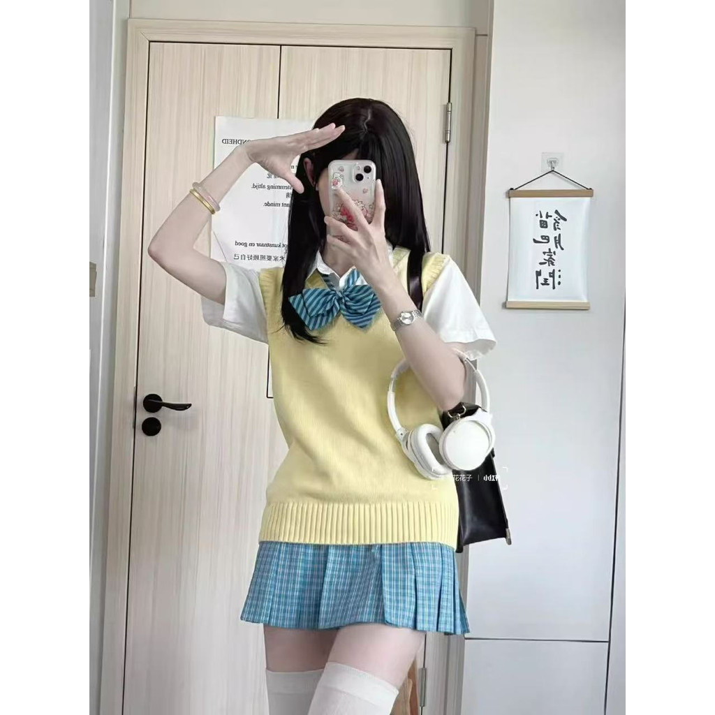 Little Blue Grid Dopamine Japanese Basic jk Uniform Short-Sleeved Shirt Skirt Blue Skirt Short Skirt High Waist LYAJIE2618 ESJR