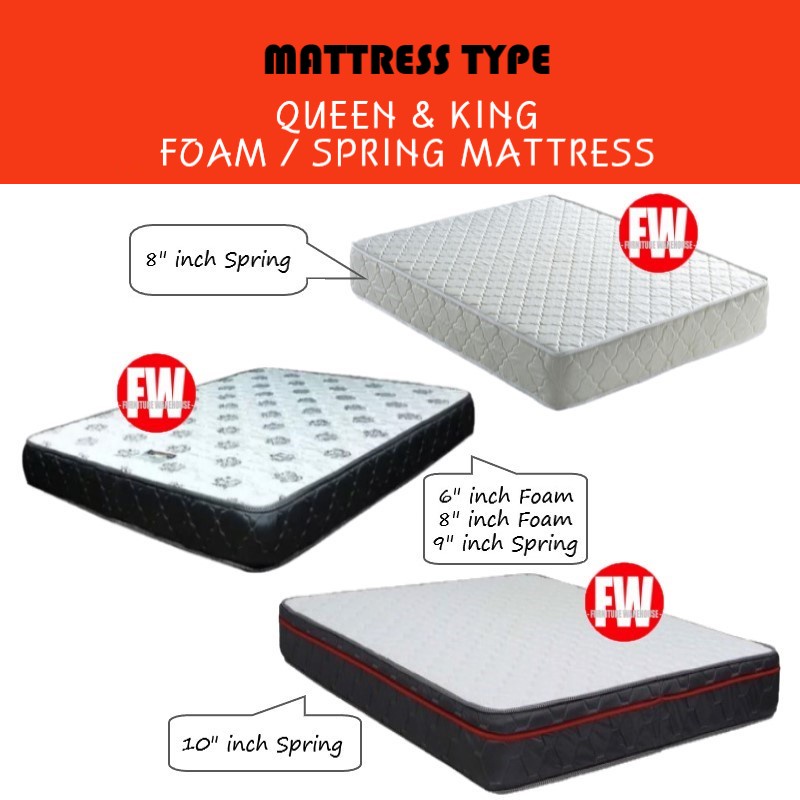 Bed Frame Mattress Foam or Spring Mattress Bedframe Package ( Single / Super Single / Queen / King )