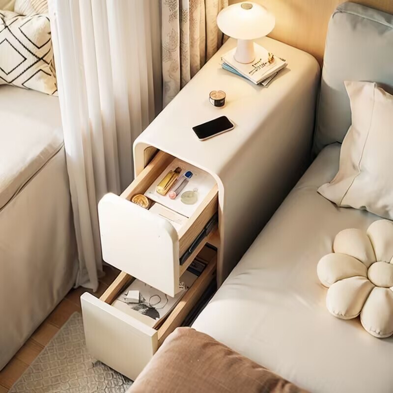 Bedside Cream Style Side Table Small Mini Storage Cabinet Extremely Narrow Household Bedroom bedside table Complete shipment