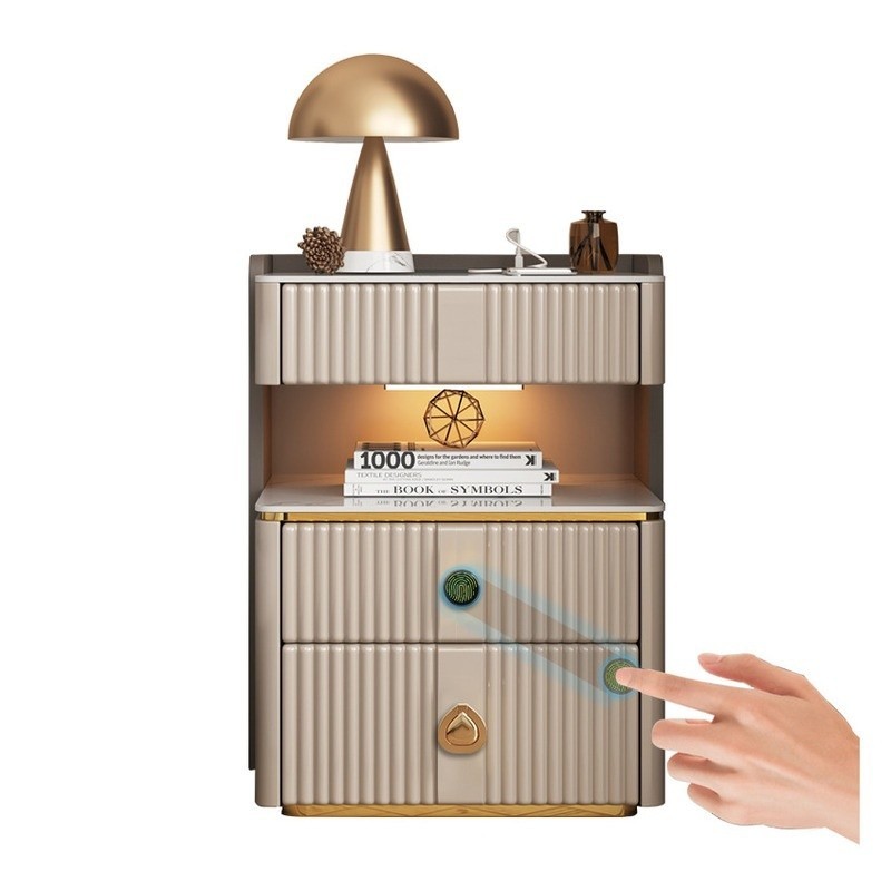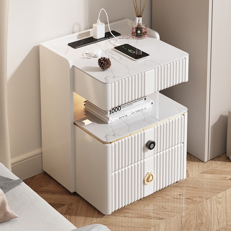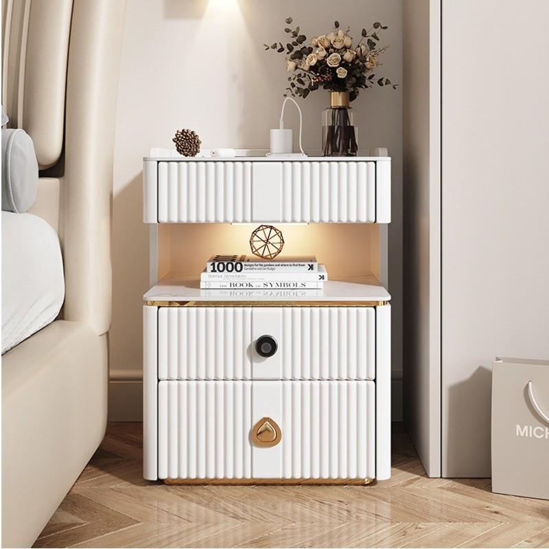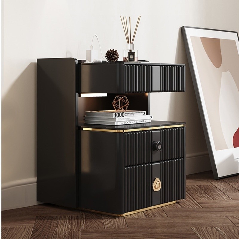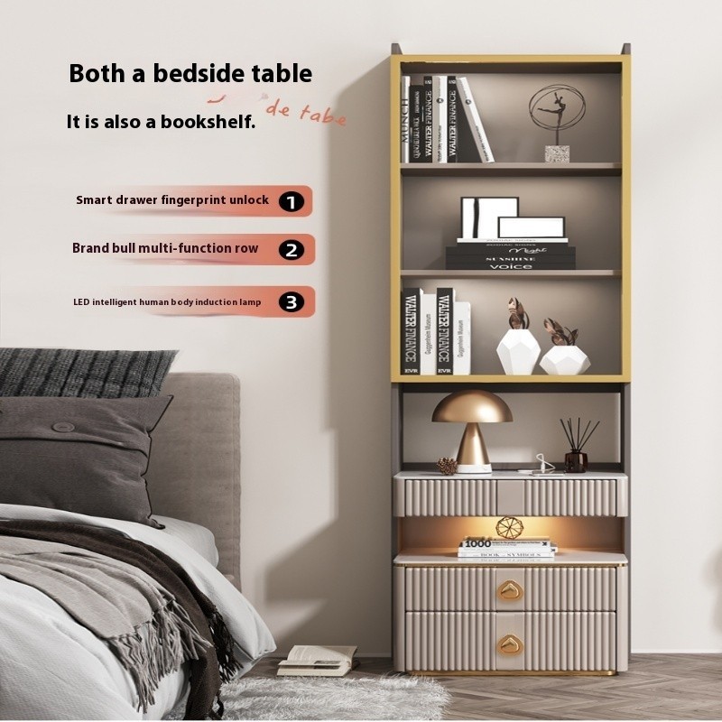 Bedside Table Light Luxury Multifunctional With Lock Bookshelf Bedroom Storage Cabinet Home Small Bedside Table Cabinet