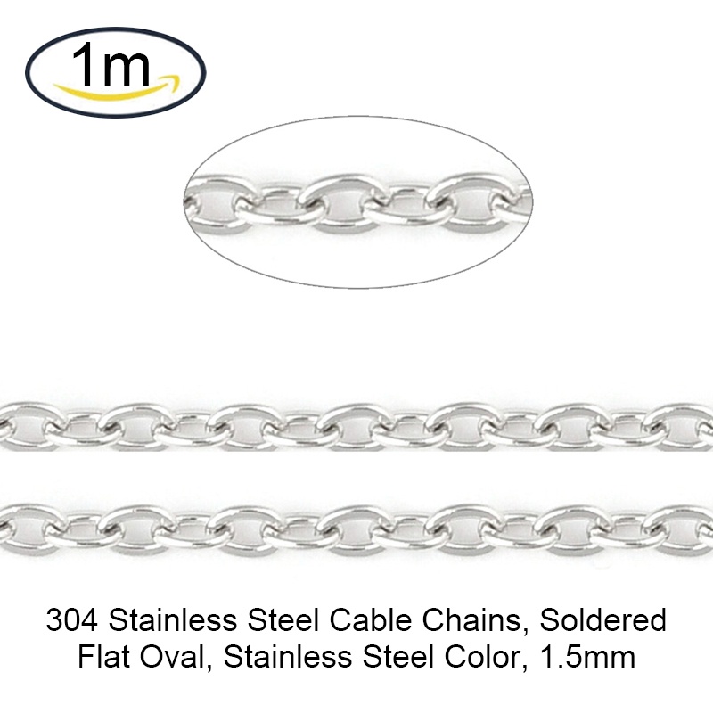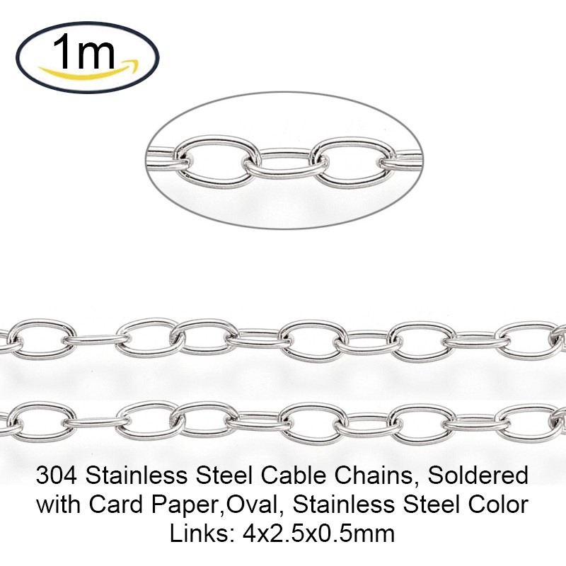 BeeBeecraft 1-5m 304/316 Stainless Steel Metal Cable Chains Curb Chain Ball Beaded Chain Soldered for Necklace Jewellery Making DIY Findings