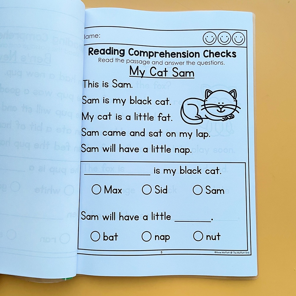 Begging Reader Reading Comprehension ChecksActivities Worksheets Beginner Kids Early Phonics English Learning Workbooks for Kindergarten Grades 1st - 2nd Children Reading Strategie