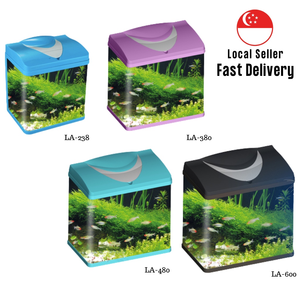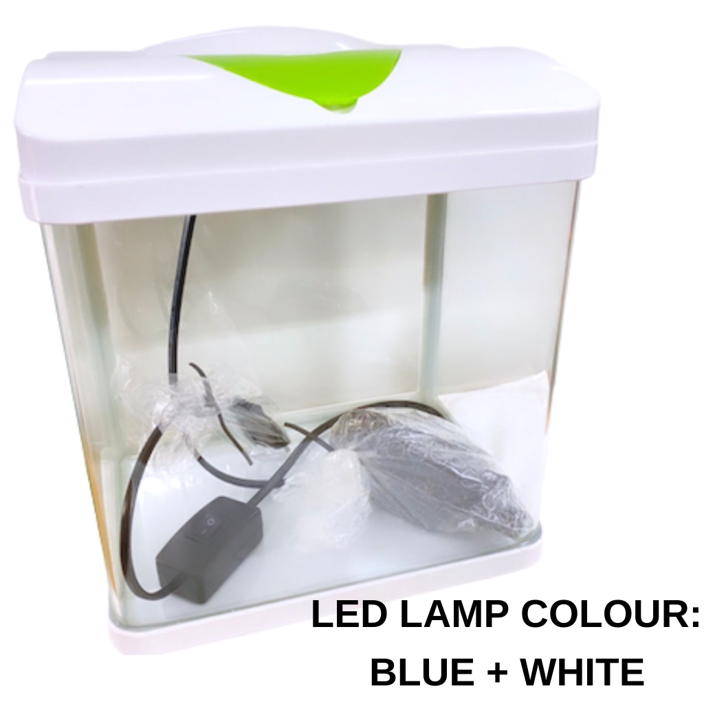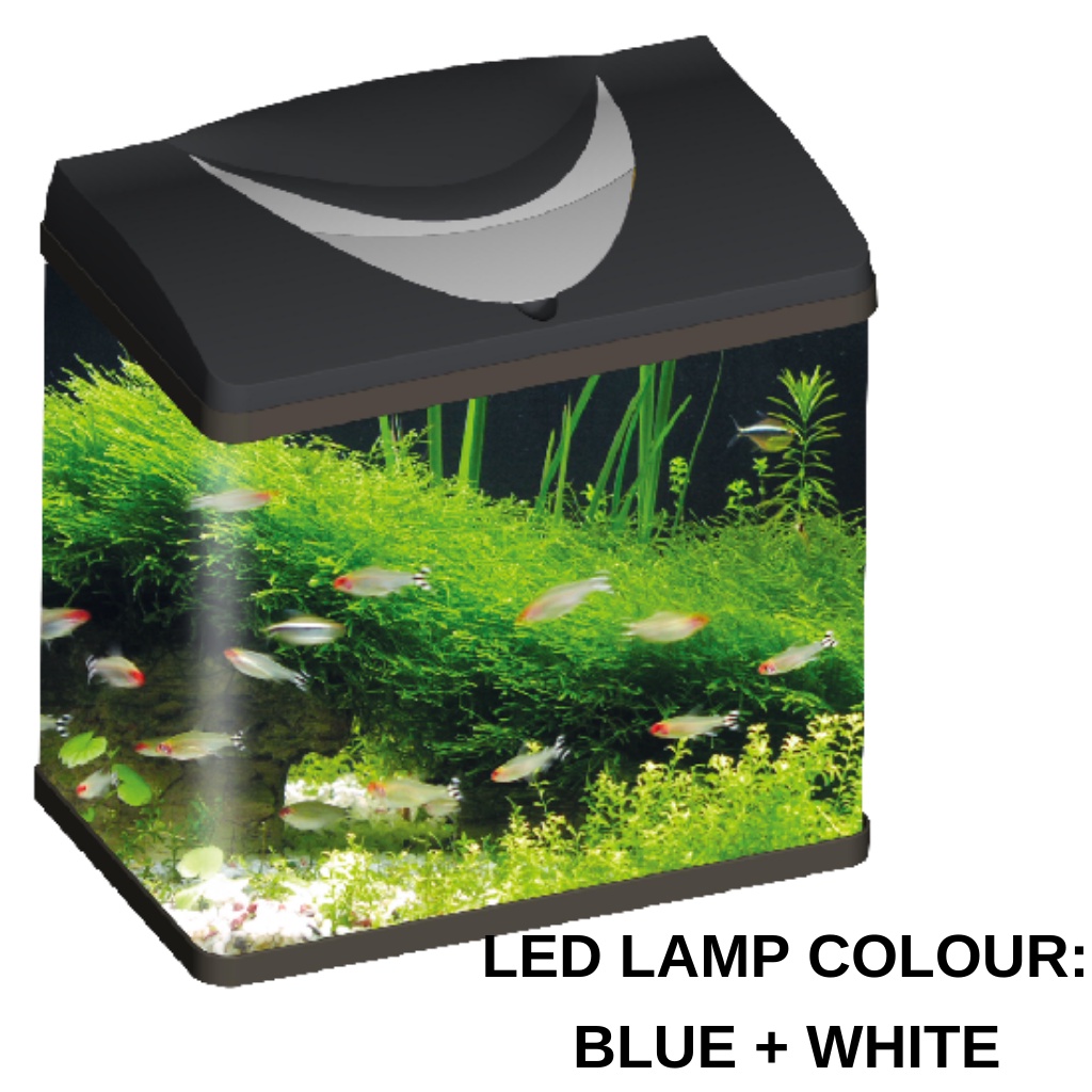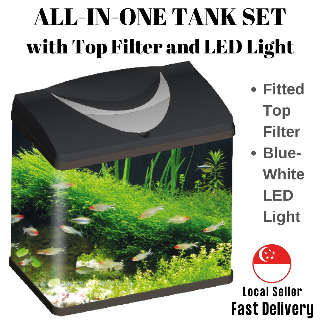 Beginner Friendly Aquarium Tank Set All-In-One with Top Filter & LED Light Set Curved Glass with Plastic Tank Cover Hood