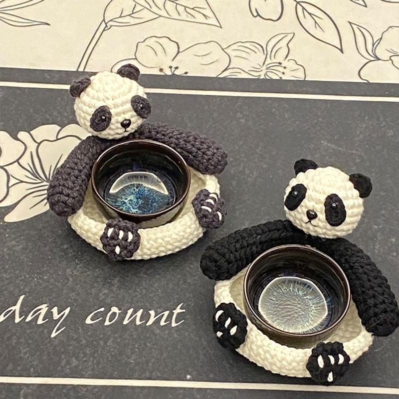 Beginner Knitting DIY Material Set Cute Panda Coaster Give Girlfriends Gifts Handmade Woven DIY Material Set Crochet Coaster Wool Crochet