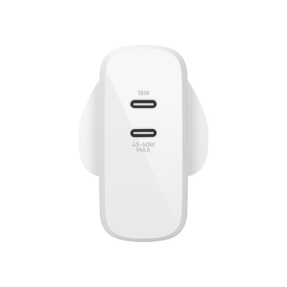 Belkin WCH003myWH BoostCharge Dual USB-C PD GaN Wall Charger 63W (iphone15,samsung,laptop,macbook,ipad & more)