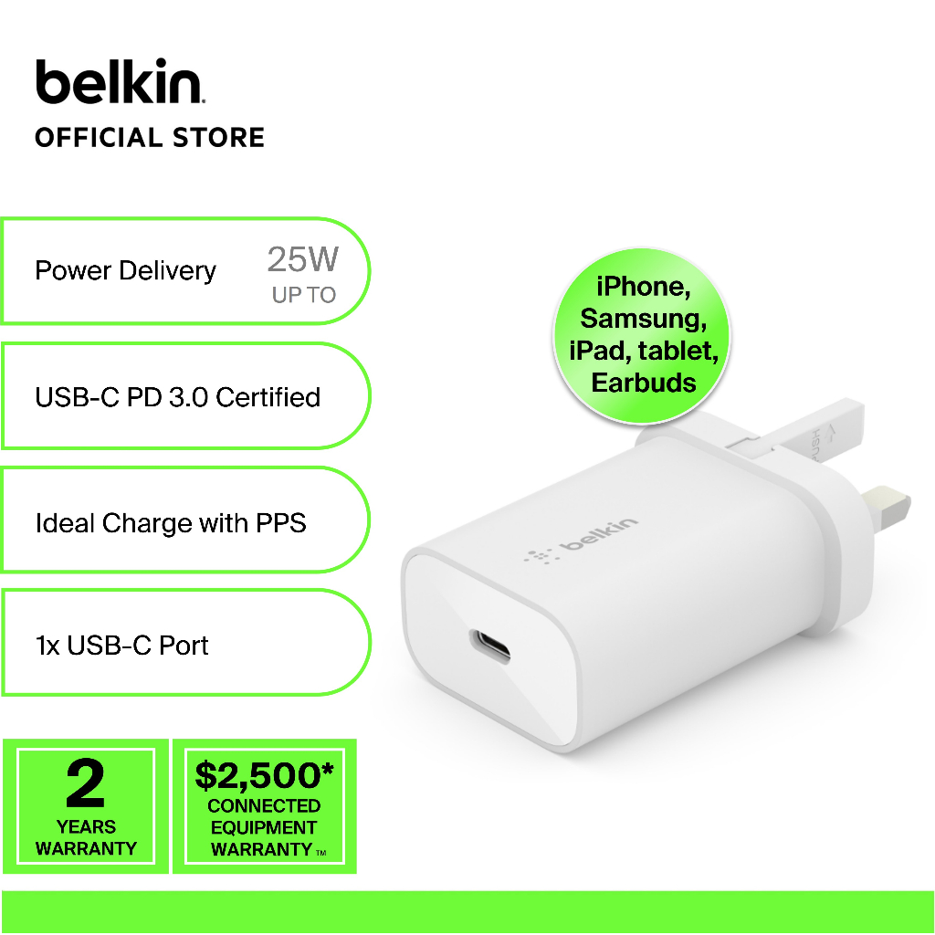 Belkin WCA004myWH BoostCharge USB-C PD 3.0 PPS Wall Charger 25W (iPhone, Samsung, iPad ,tablet, earbuds & more)