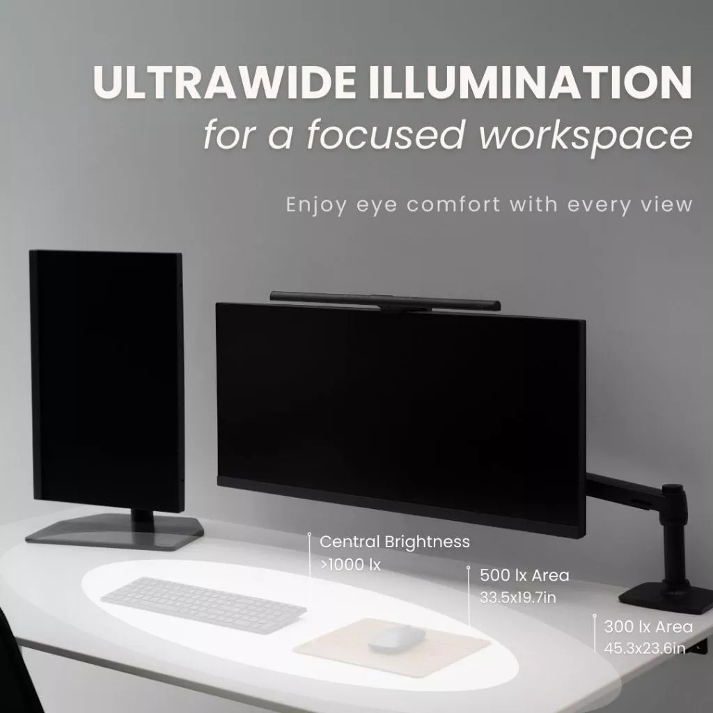 BenQ ScreenBar Pro|Monitor Light|Bright and Ultrawide Illumination|Auto On & Off Desk Lamp|Auto-Dimming