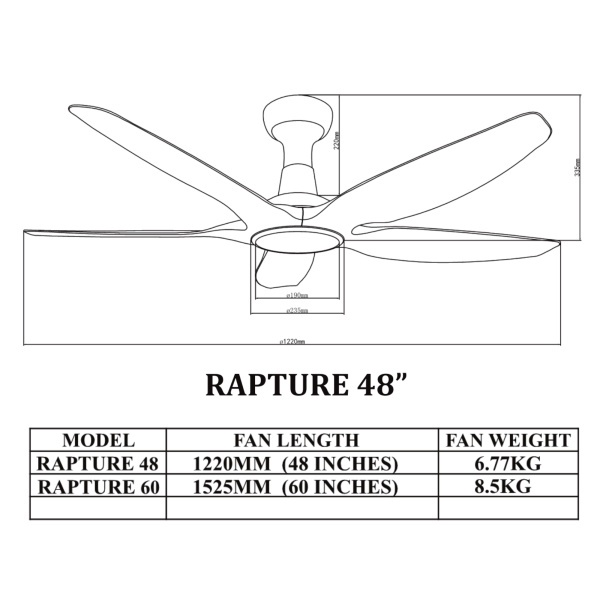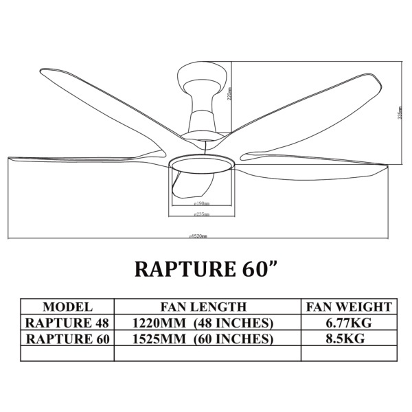 Bestar RAPTURE DC Smart Ceiling Fan with LED light (Smart Control) 48" 60"