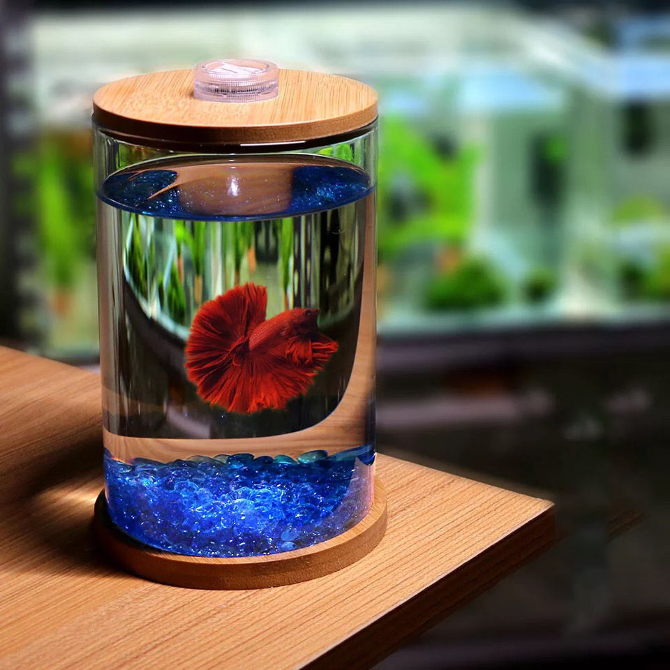 Betta Fish Tank Small Glass Fish Tank Desk Mini Aquarium Tank with Accessories