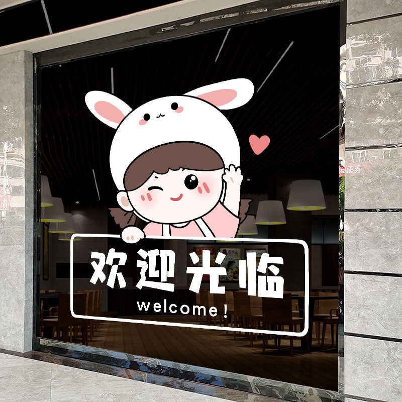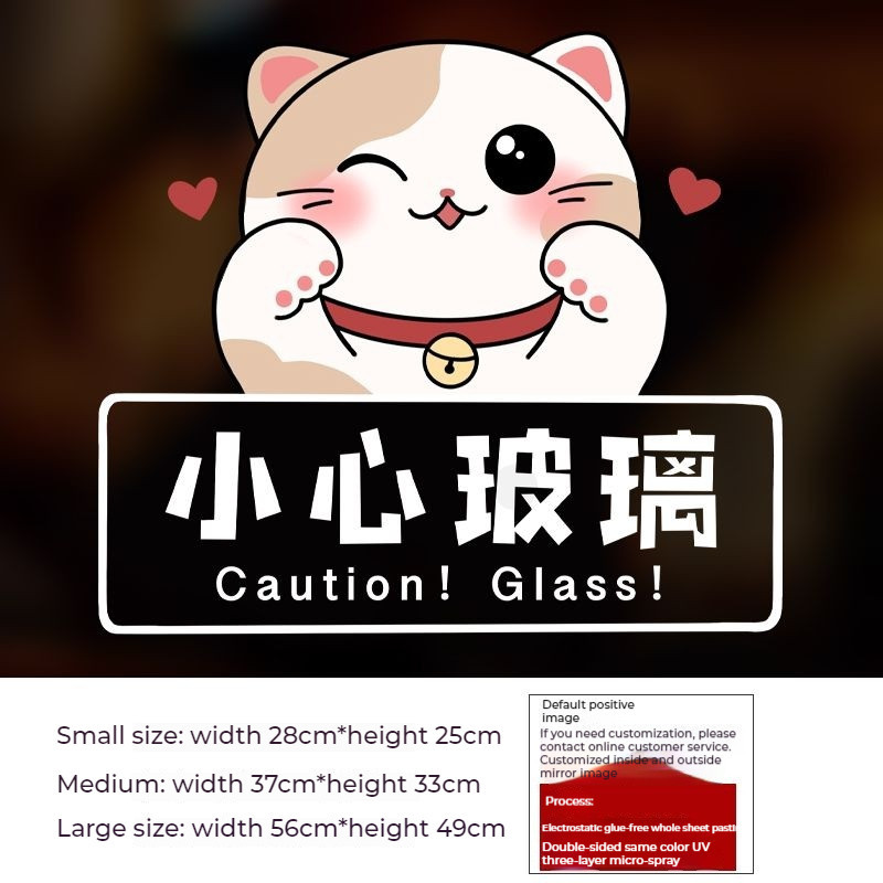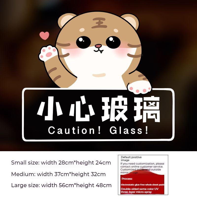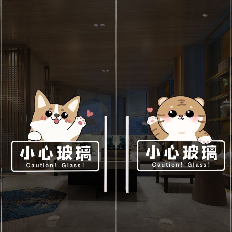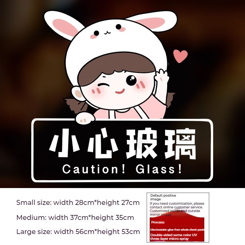 Beware of Glass Reminder Stickers Glass Door Stickers Creative Milk Tea Restaurant Shop Anti-collision Sliding Door Welcome Door Stickers