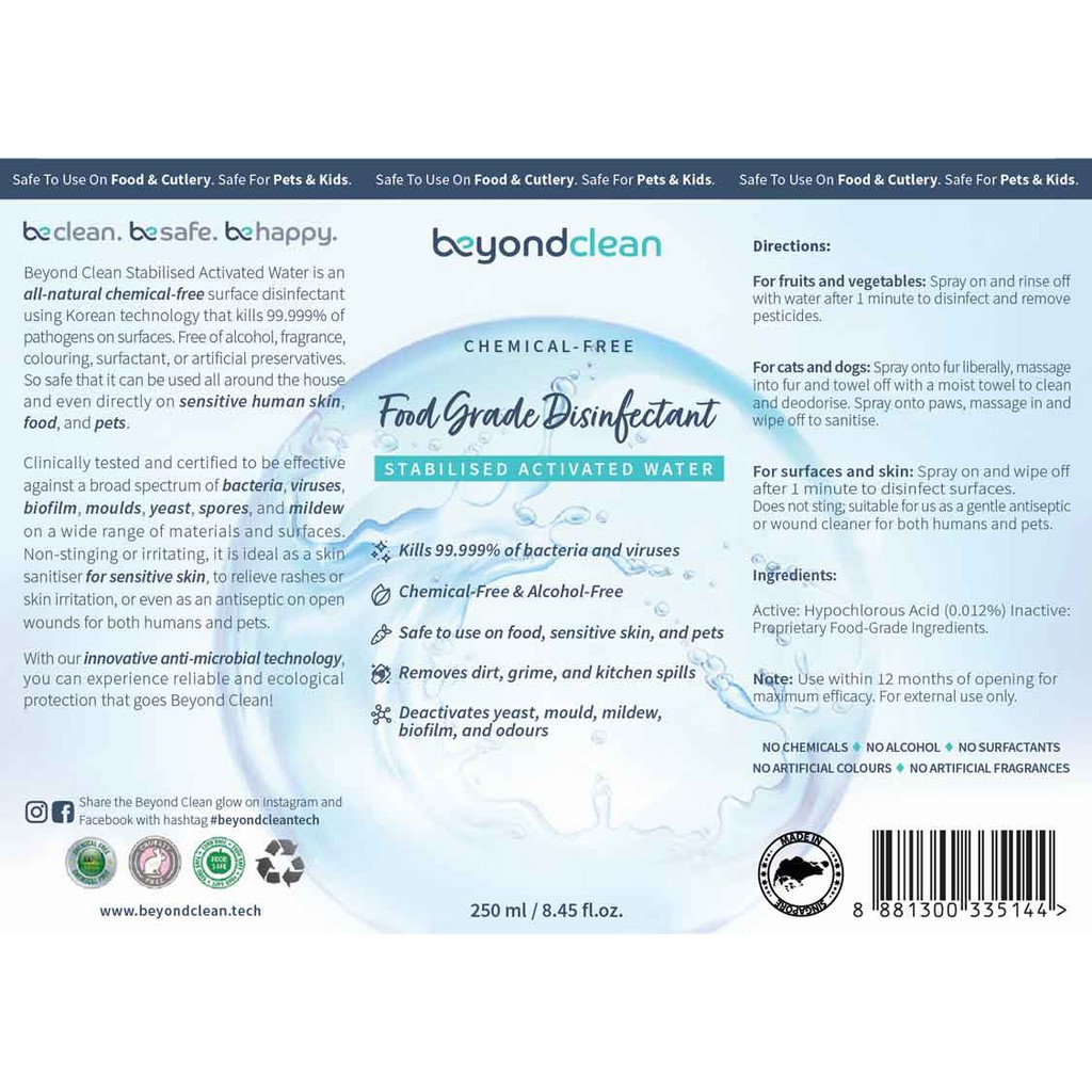Beyond Clean Disinfectant | All-Purpose | Food Grade | Pet Odour Remover | Home Spray | Kid Safe (3 Sizes)