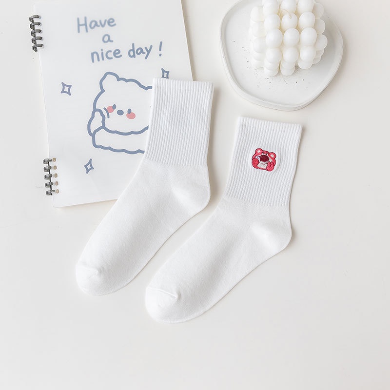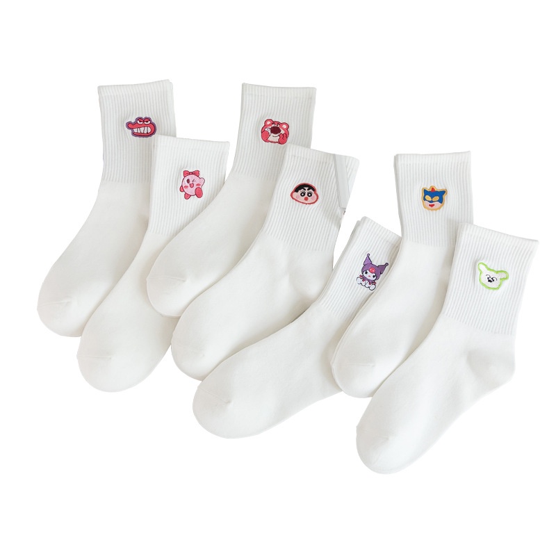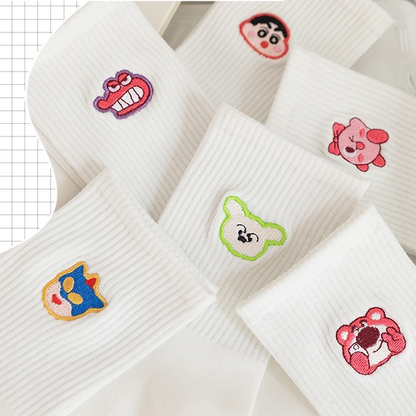 Bfuming Cartoon Socks High Quality Animation Embroidery Socks Sports Socks Women Cotton Socks Fashion Soild Color Socks