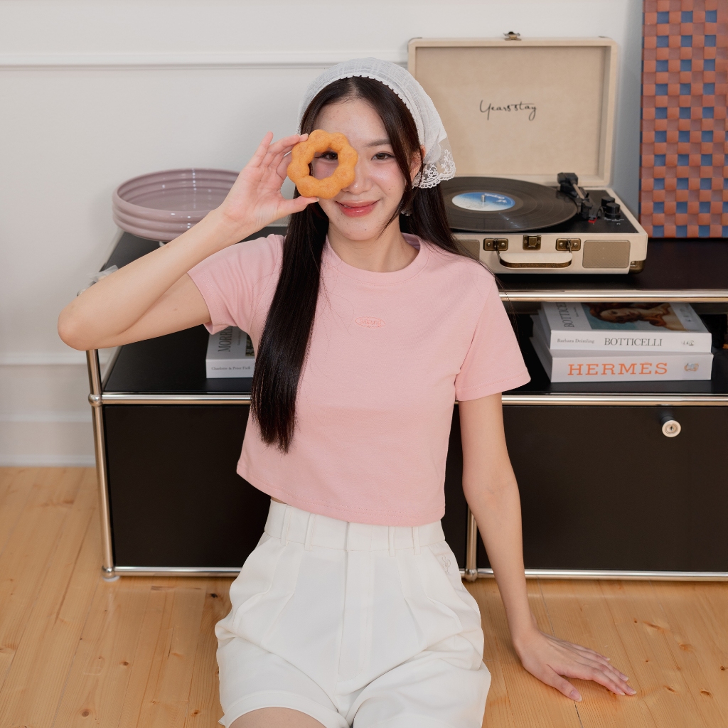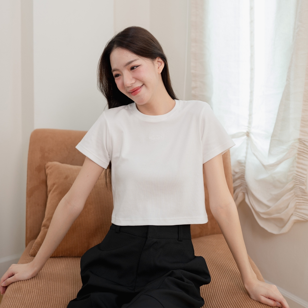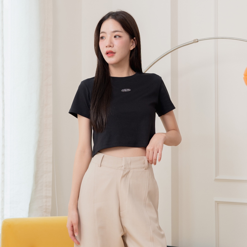 Bibi_SP086 Baby Tee Cotton 1 Logo Embroidery Comfortable To Wear Easy Match Can Be Matched With Both High/Low Waist.