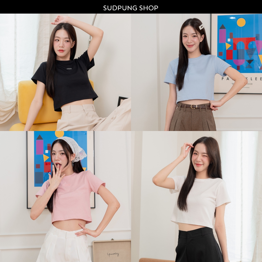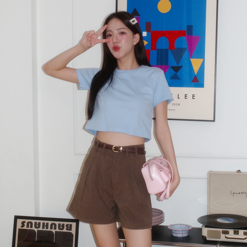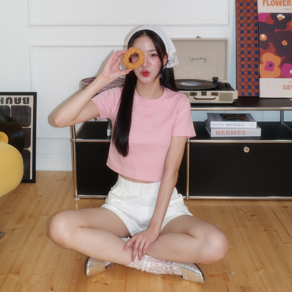 Bibi_SP086 Baby Tee Cotton 1 Logo Embroidery Comfortable To Wear Easy Match Can Be Matched With Both High/Low Waist.