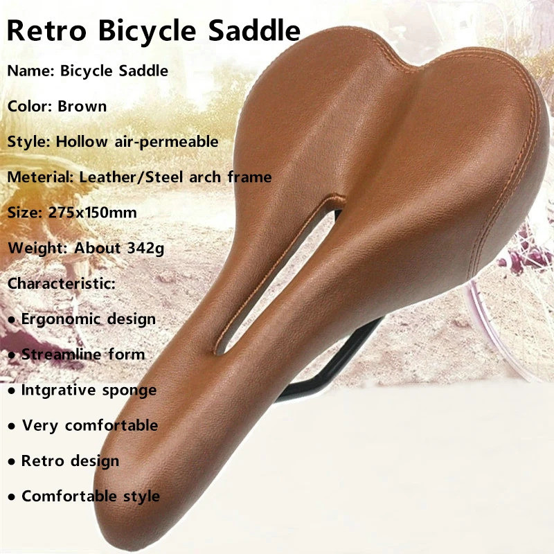 Bicycle Saddle Retro Bike Seat Hollow Cycling Saddle Vintage Custion Road Bike MTB Saddle Classic PU Leather Brown Bike Seat