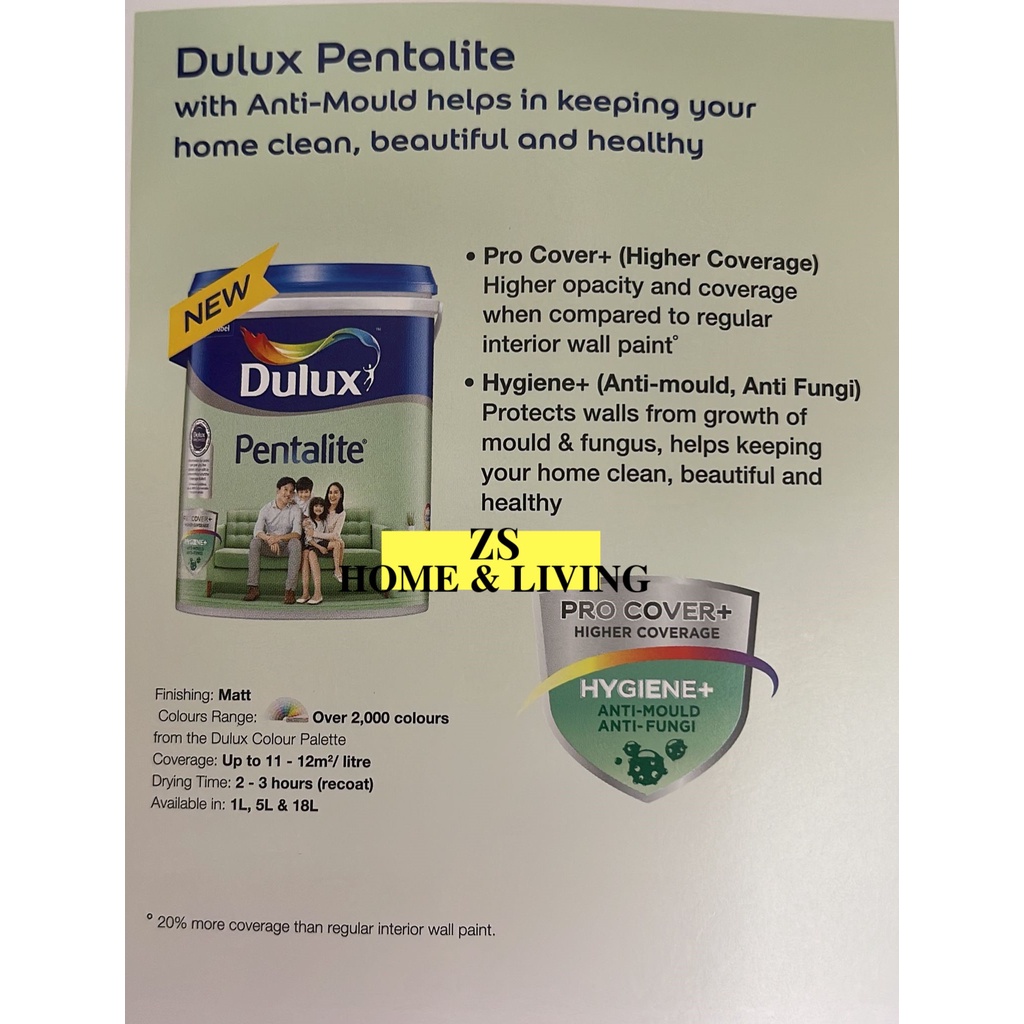 Big Sales!! Dulux Pentalite Interior Smooth Matt Finish ICI PAINT Anti Mould Paint Low Odour