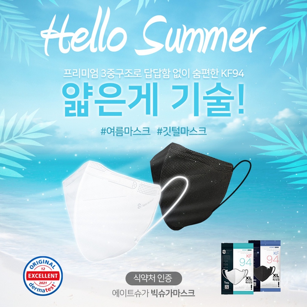 Big Size Mask XL 50Pcs Plus Size KF94 Big Face Korean Mask Summer type Mask 1Box