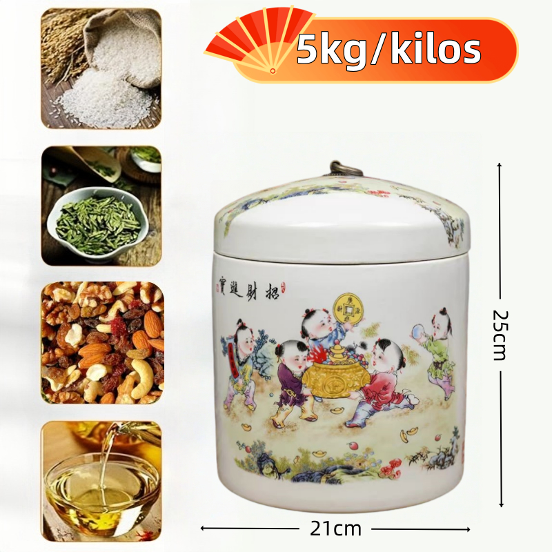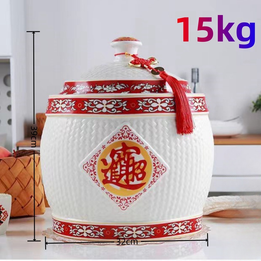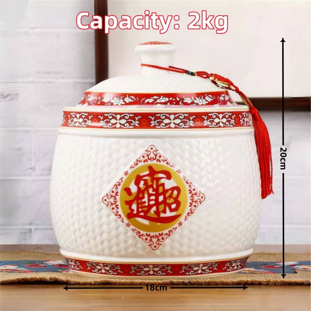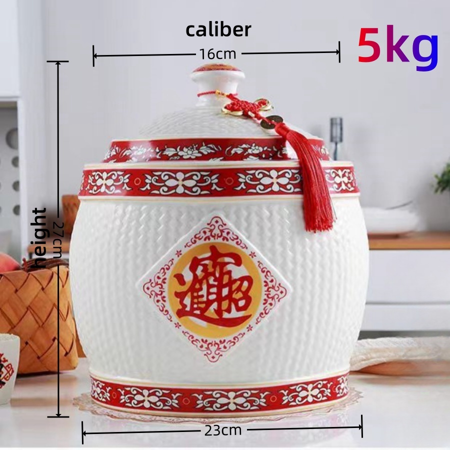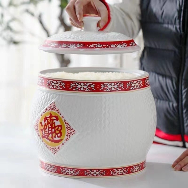 Big ceramic rice dispenser 5kg/ 10kg clay jar with cover porcelain rice container rice box storage