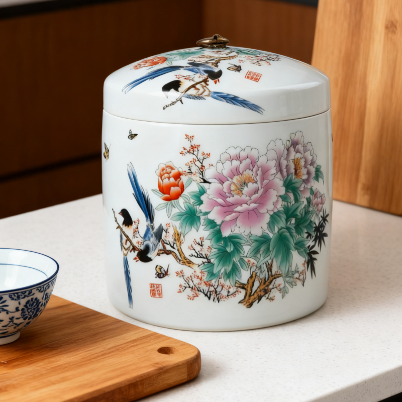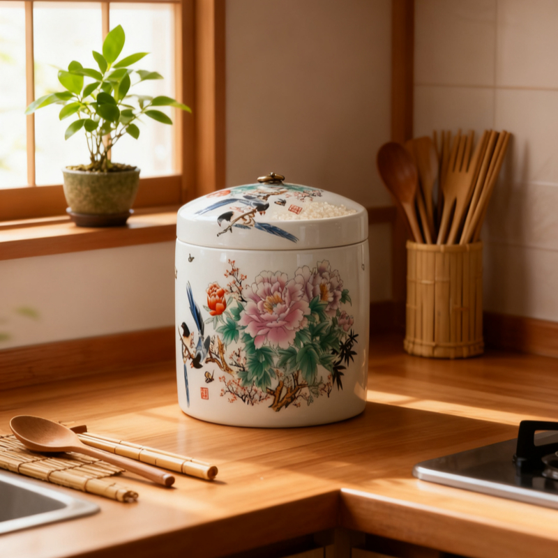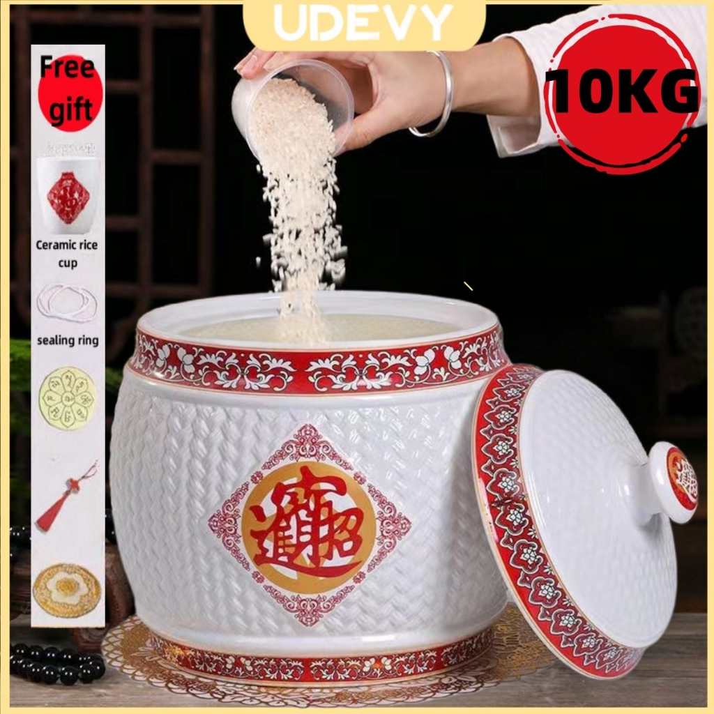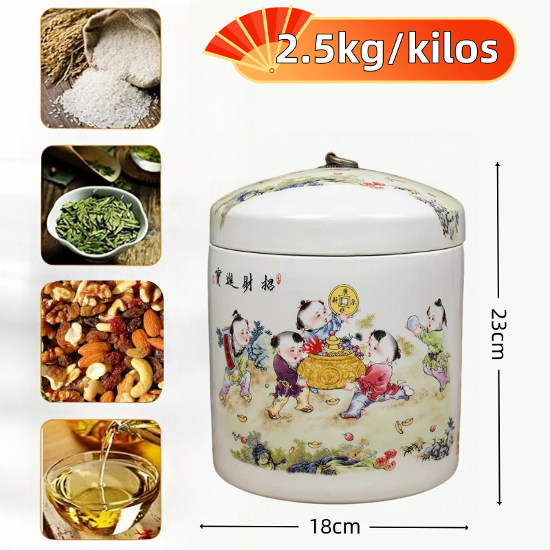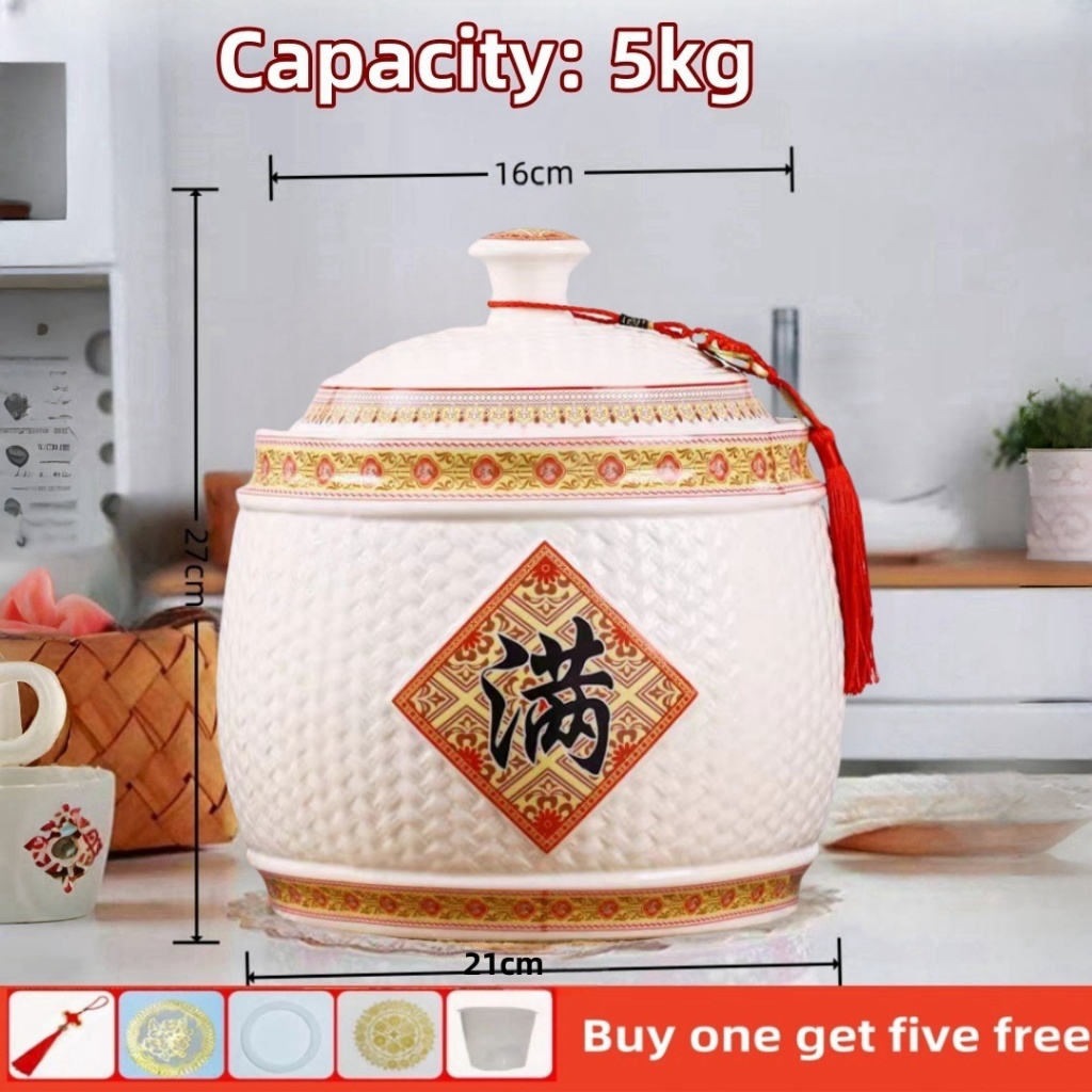 Big ceramic rice dispenser 5kg/ 10kg clay jar with cover porcelain rice container rice box storage