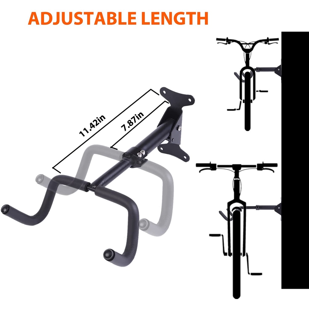 Bike Wall Mount Rack | Bicycle Rack Storage | Horizontal Bicycle Storage Hanger | Adjustable Bike Hanging Hook, Heavy Duty Bike Rack Hook Holder Mounted Garage Indoor or Home