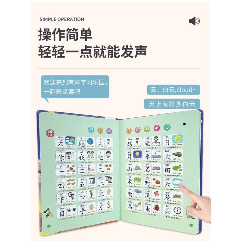 Bilingual Chinese Sound Book Early Learning Interactive Book Press to Listen Hanyu Pinyin Book