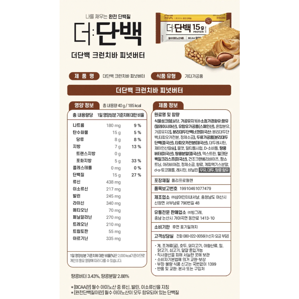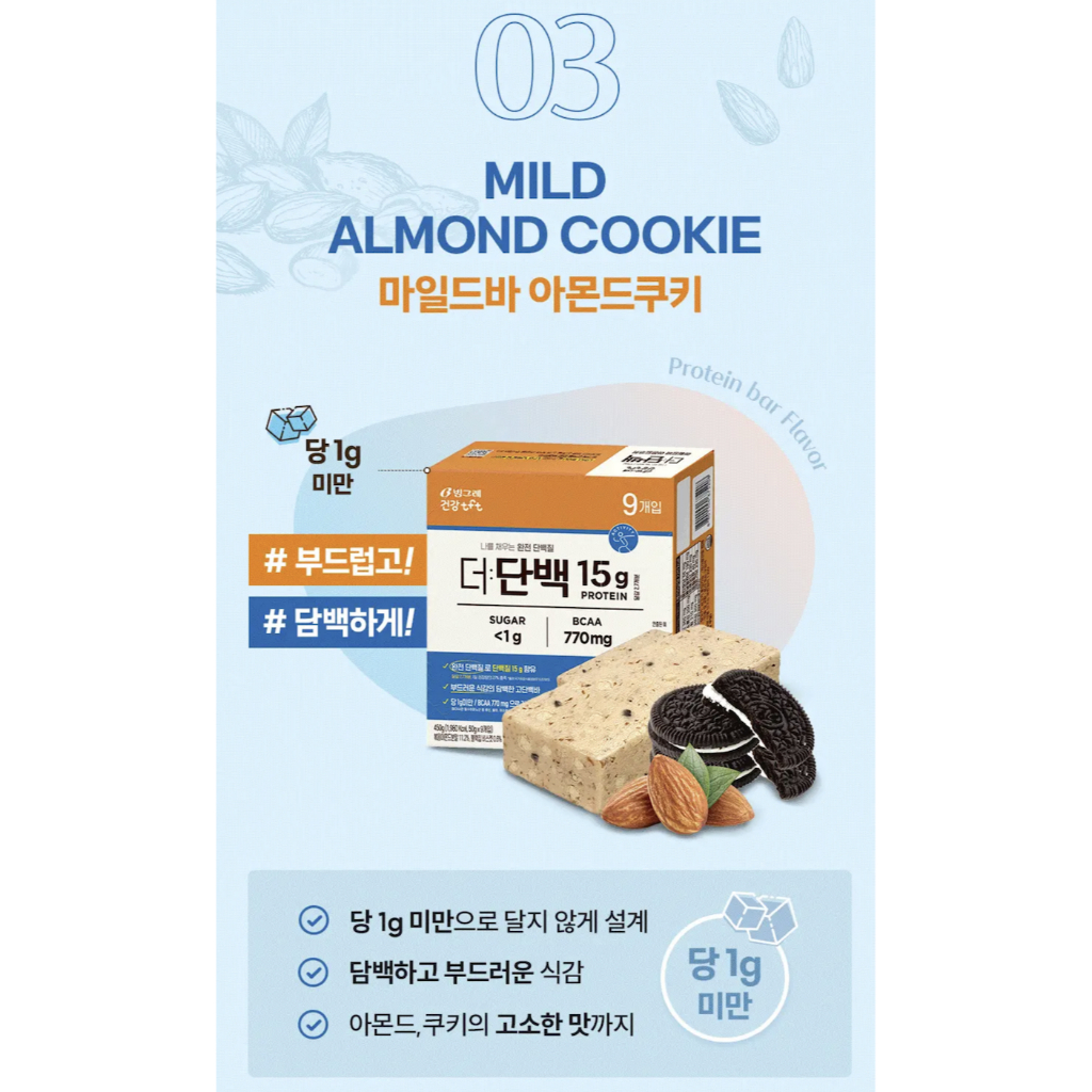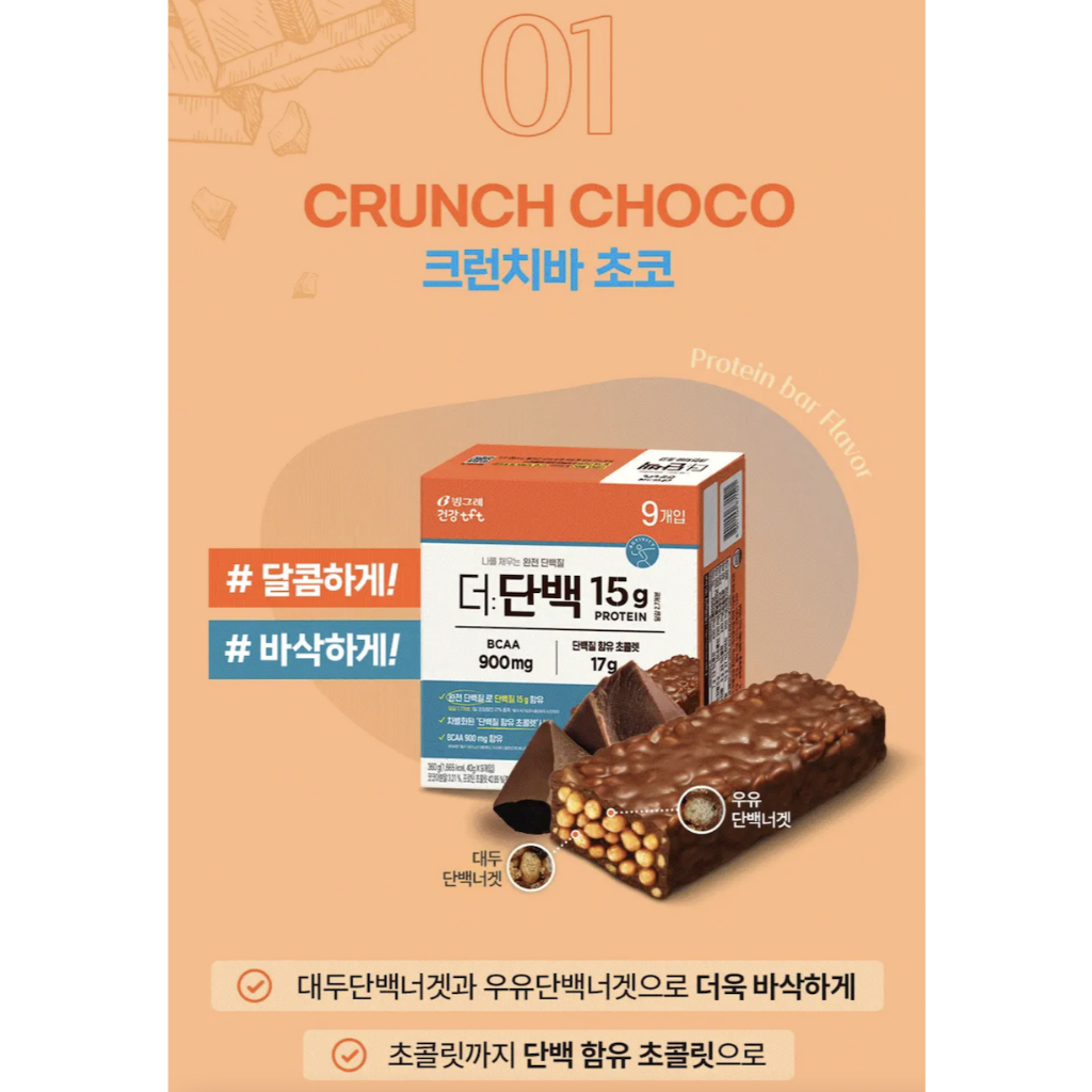 Binggrae The Protein Bar 3 Flavors (Choco, Peanut Butter, Almond Cookie), Breakfast Bar, Diet Protein Snack ,Diet Food, Meal Substitute, Diet Snack
