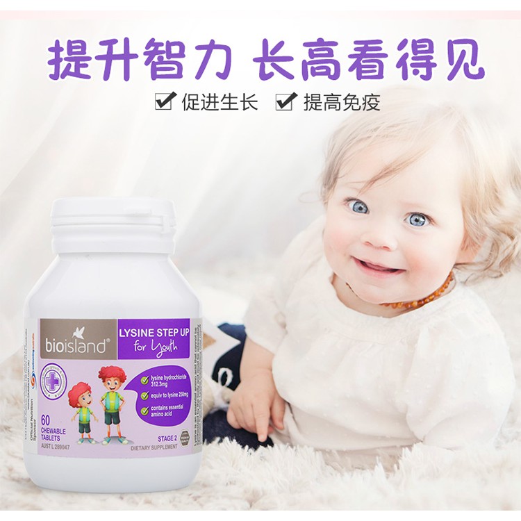Bio Island Lysine Step Up for Youth ( 60 tablets ) ( Made In Australia )