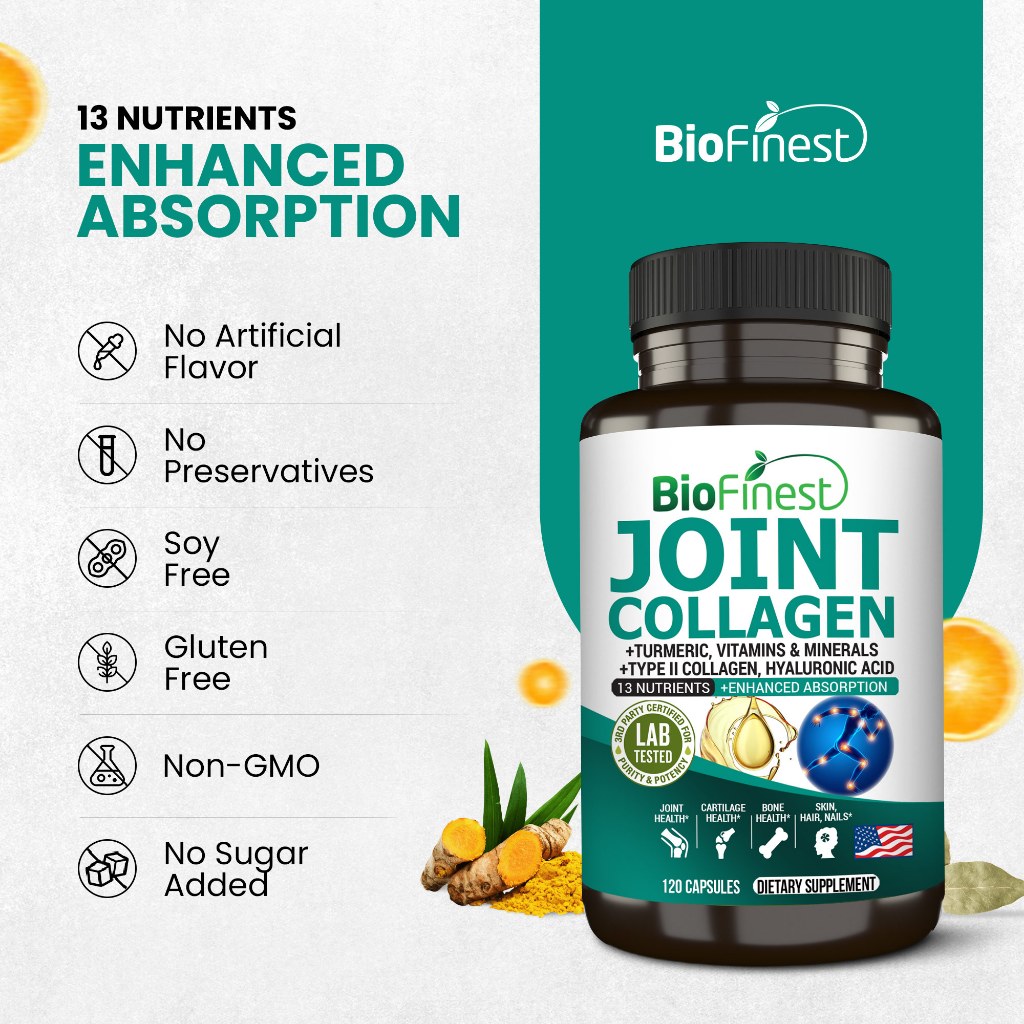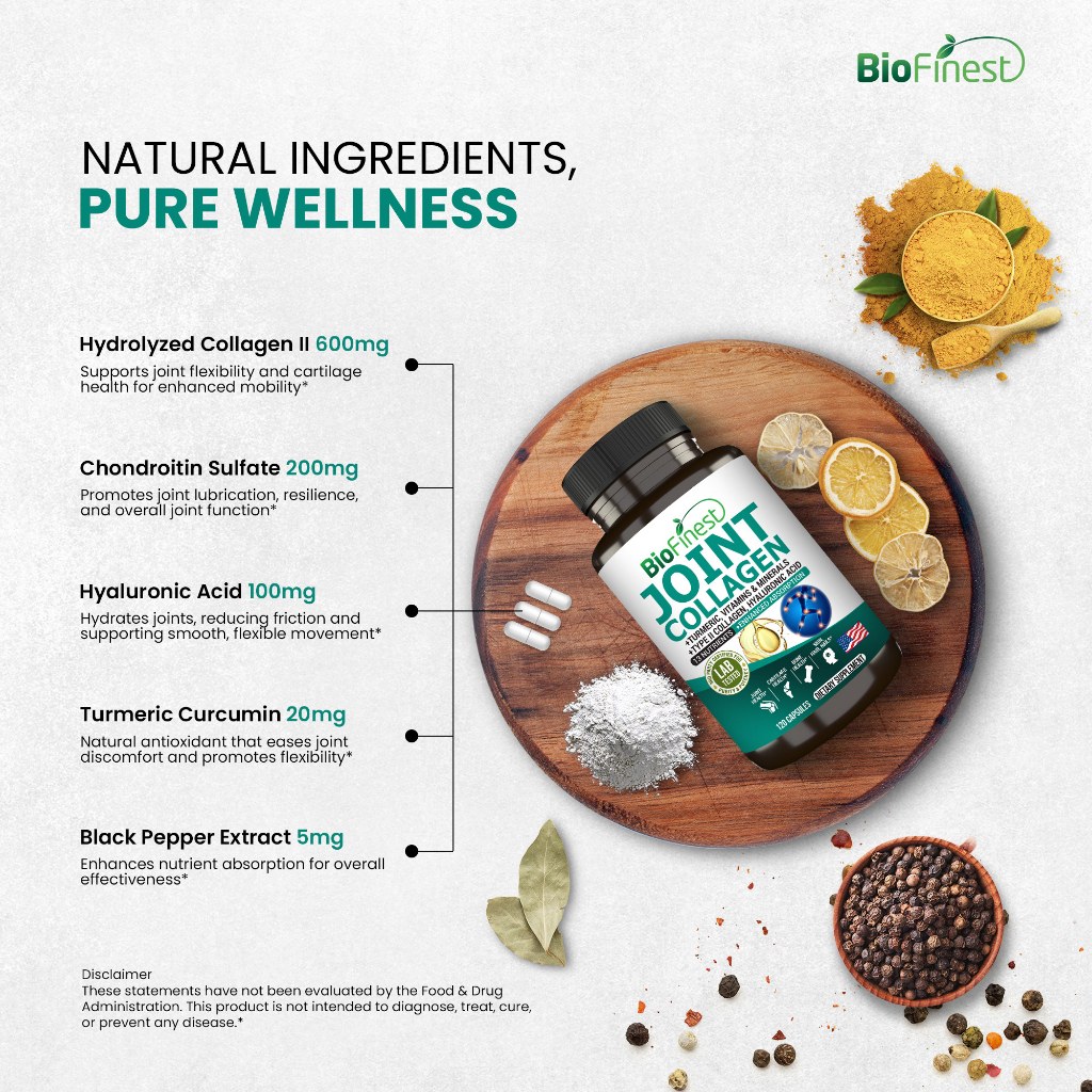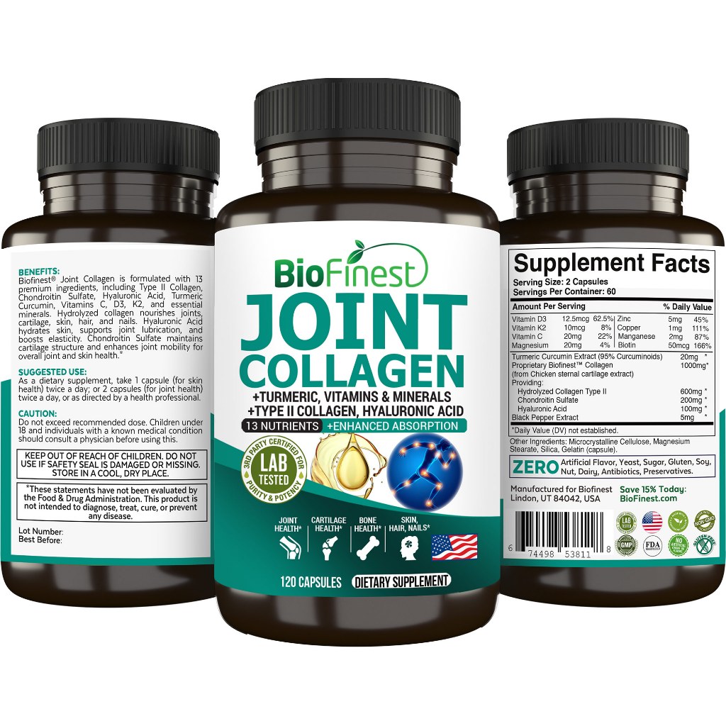 Biofinest Joint Collagen Type 2 Supplement Chondroitin Hyaluronic Acid Turmeric Vitamin Joint Mobility Pain Relief 120s