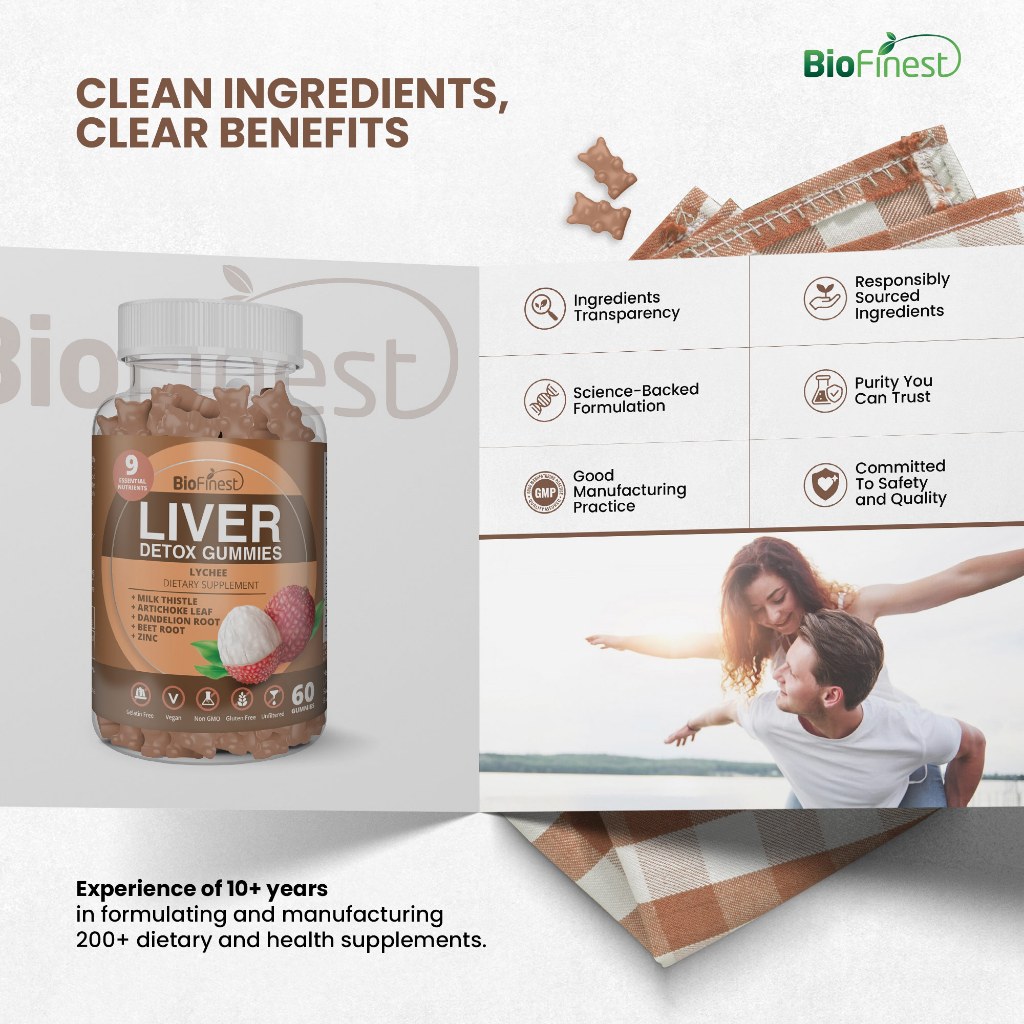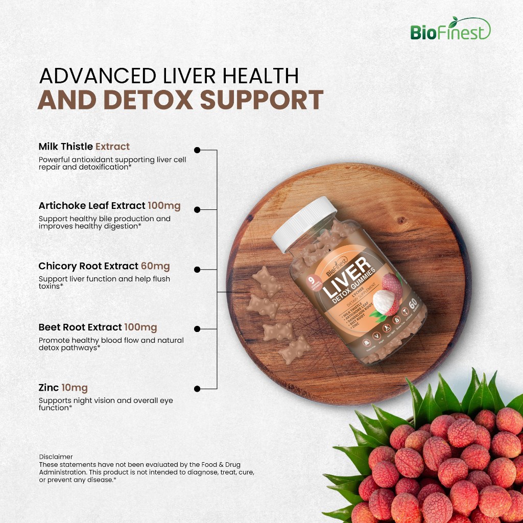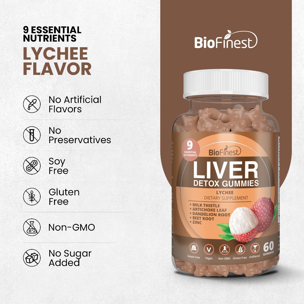 Biofinest Liver Detox Gummy Supplement Milk Thistle Energy Digestion Cleanse Stress Alcohol Hangover Relief (60 Gummies)