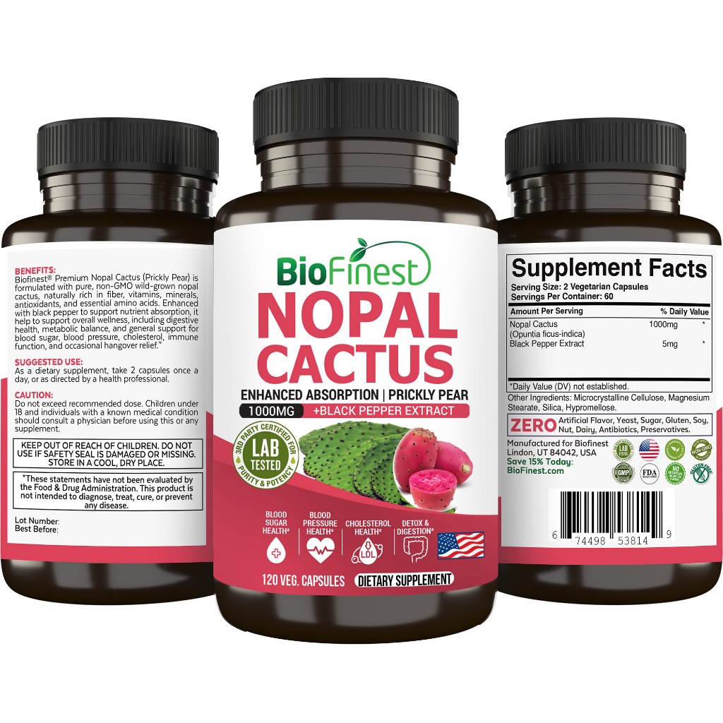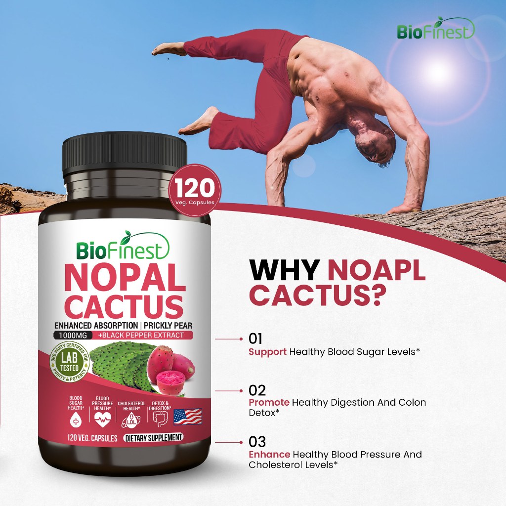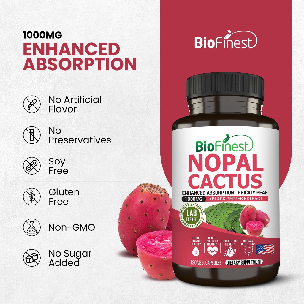 Biofinest Nopal Cactus 1000mg Supplement Prickly Pear Digestion Weight Loss Diabetes Blood Sugar Cholesterol Detox(120s)